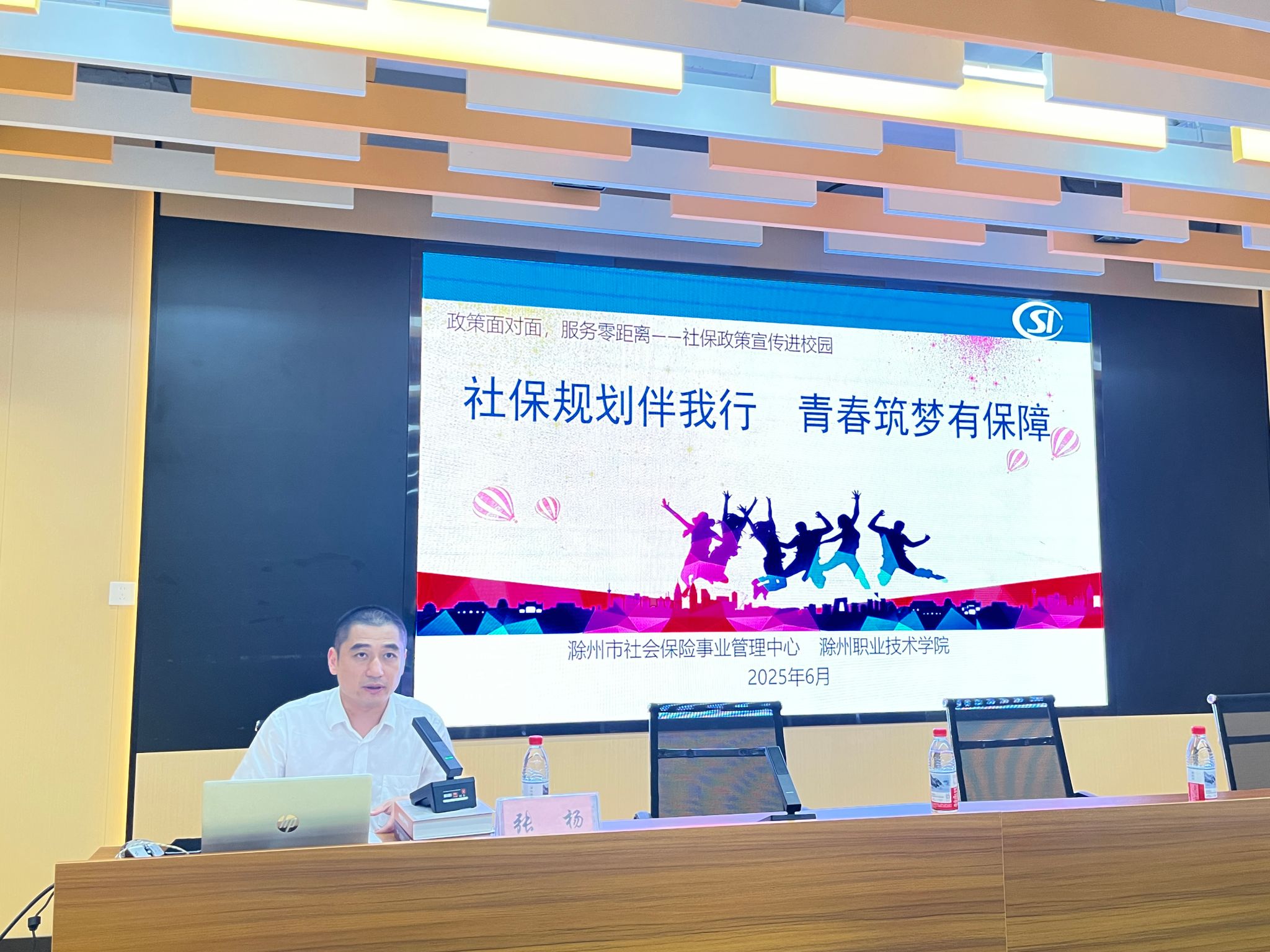 讲座现场,张杨对社会保险的概念、类型及参保意义进行系统阐释,尤其针对滁州市高校毕业生就业创业补贴政策展开重点解读,从政策维度为学生职业规划指明方向;刘二涛聚焦毕业生关心的社保办理、跨省转移接续、缴费证明查询打印等实操难题,结合流程演示,手把手教学生掌握关键操作技能;朱婷婷则深入剖析工伤认定标准与保险待遇,强化学生工伤风险防范意识,织密职业安全“防护网”。