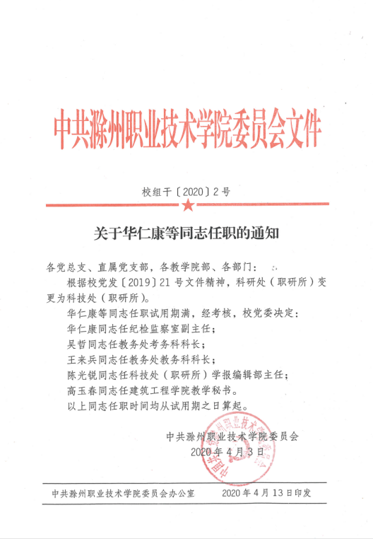 关于华仁康等同志任职的通知
