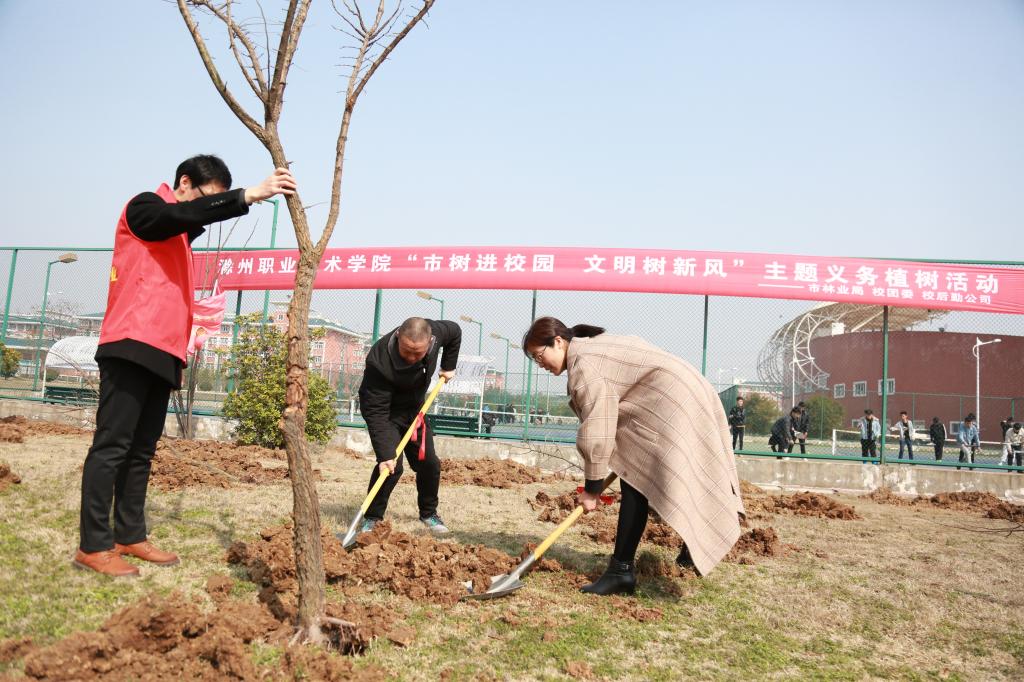 校党委副书记刘树俭、滁州市林业局工会主任陈伟、滁州市林业科学研究所所长董志斌、校后勤公司总经理吴杰参加了本次活动,活动由校团委书记朱婷婷主持。活动中,领导身体力行,拿起工具,挖坑、栽植、浇水,每一个动作都充满着对树苗茁壮成长的期盼。市林业局为校园新添的一批琅琊榆和黄栌,将成为校园又一道美丽的风景线。
