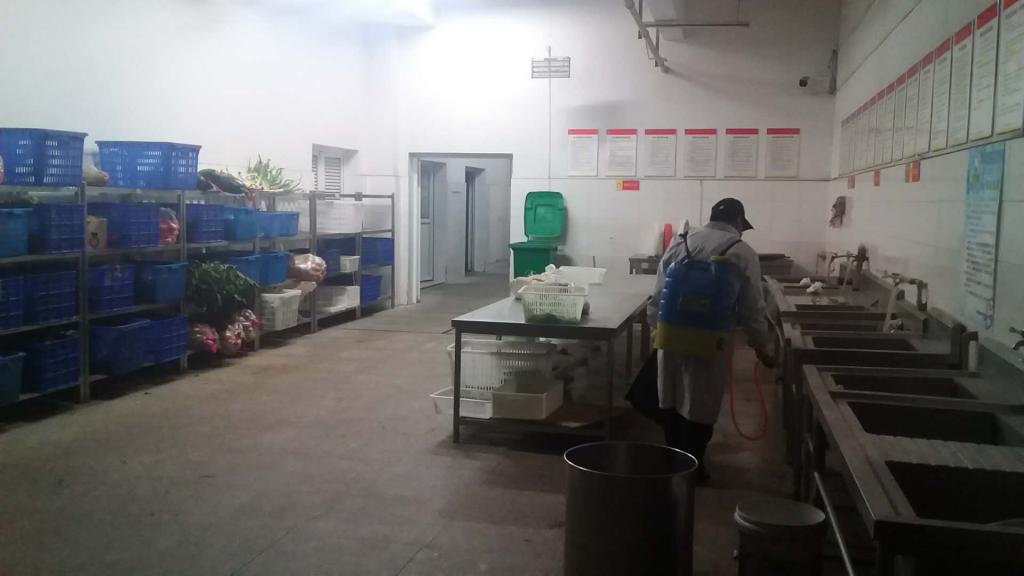 春暖花开,气候怡人。同时,这也是各种病虫害开始滋生的时期。为防止病媒生物给全院师生带来危害,保障师生的健康安全,有效控制春季传染病的发生,学校后勤公司根据计划安排,积极联系消杀公司的专业工作人员于4月4日、5日两天来校,对食堂、班级、办公室、户外绿化进行全面消杀工作。清理食堂内外堆放的杂物,杜绝蟑螂的滋生场所;对各班级教室、卫生间、垃圾桶、墙角等潮湿地,采用喷雾器药物消杀方法,彻底消灭蚊蝇、鼠患,切断四害孳生地。