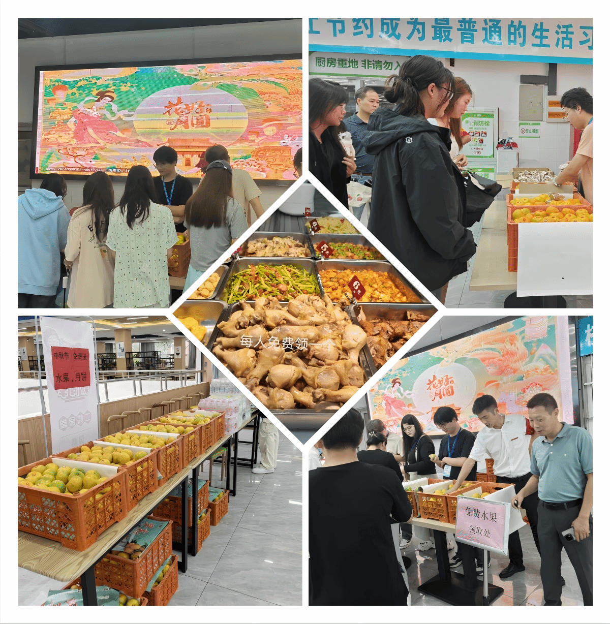 活动中,每位同学在食堂就餐时都可以领到月饼、福橘、点心、饮料及一份免费荤菜等美食套餐。每份套餐都承载着深情厚谊,月饼有经典五仁、香浓豆沙、甜蜜凤梨口味多样;不仅是对传统佳节的致敬,更是学校对同学们深深关怀的体现。食堂内大家吃月饼、剥福橘,尝美食等,欢声笑语不断,脸上洋溢着幸福的笑容,心中充满了温暖与感动。这份来自学校的贴心礼物,不仅让同学们品尝到了节日的甜蜜,更感受到了家一般的温馨与归属感。