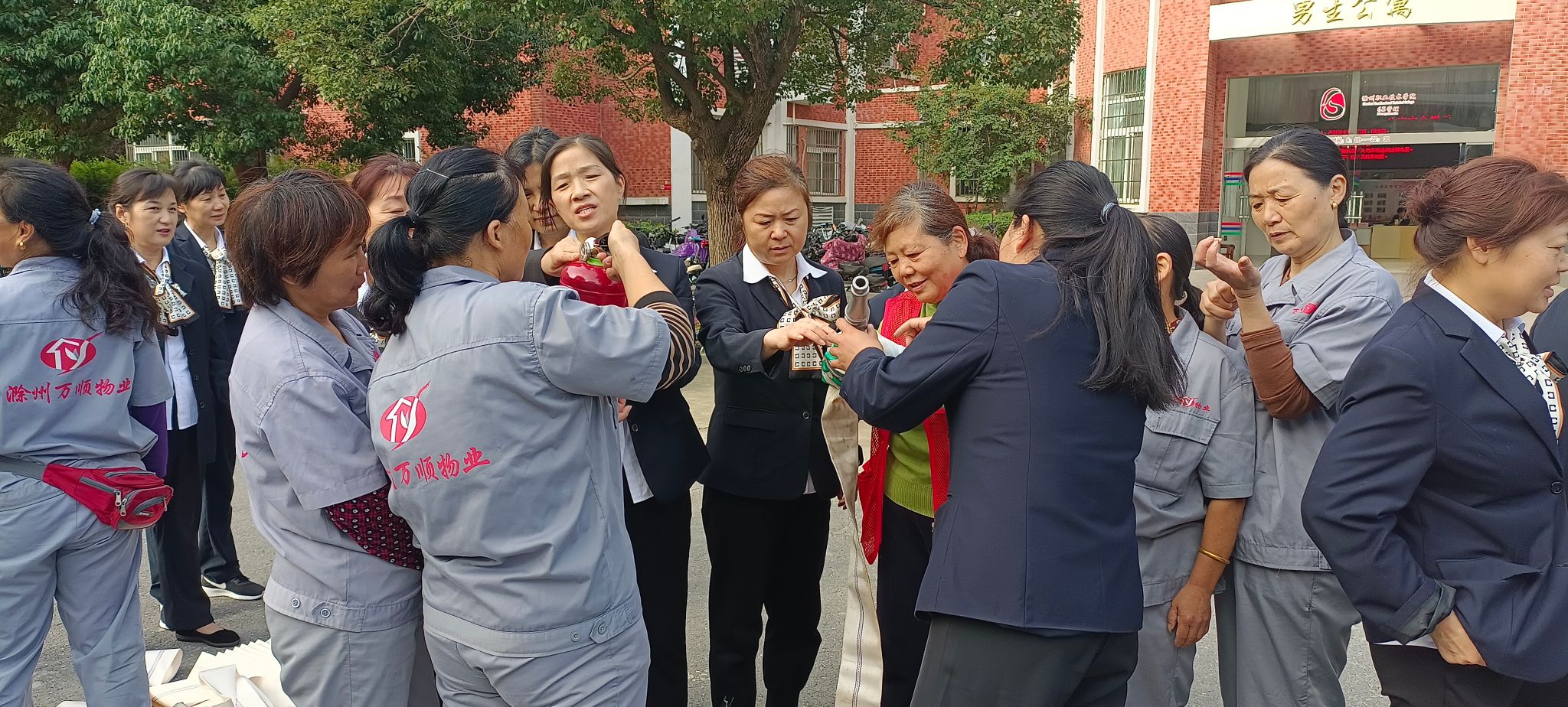 为进一步提高学校学生公寓的消防安全意识,增强应对火灾的自救能力,掌握扑灭初期火灾的技能。2023年10月5日上午8点,在学生公寓11--12号楼大门口,由学生公寓项目经理梁发妹给学生公寓全体工作人员做了消防器材使用培训活动。