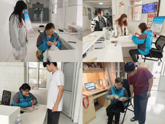 宿管生活服务日当天活动内容分为“爱心缝补”、“内务小课堂”、“清洁大揭秘”三个环节。在“爱心缝补”环节,宿管阿姨变身“缝纫达人”,为学生提供专业的缝补服务,无论是开线的裤脚,还是掉扣的衣衫,在宿管阿姨手中都能“焕然一新”。此外,阿姨们还手把手教同学们穿针引线等基本的缝补技巧。不少学生在阿姨指导下,成功完成人生中第一次缝补,现场欢声笑语不断,同学们在学习过程中,既感受到了传统手工技艺的魅力,也体会到家一般的温暖。