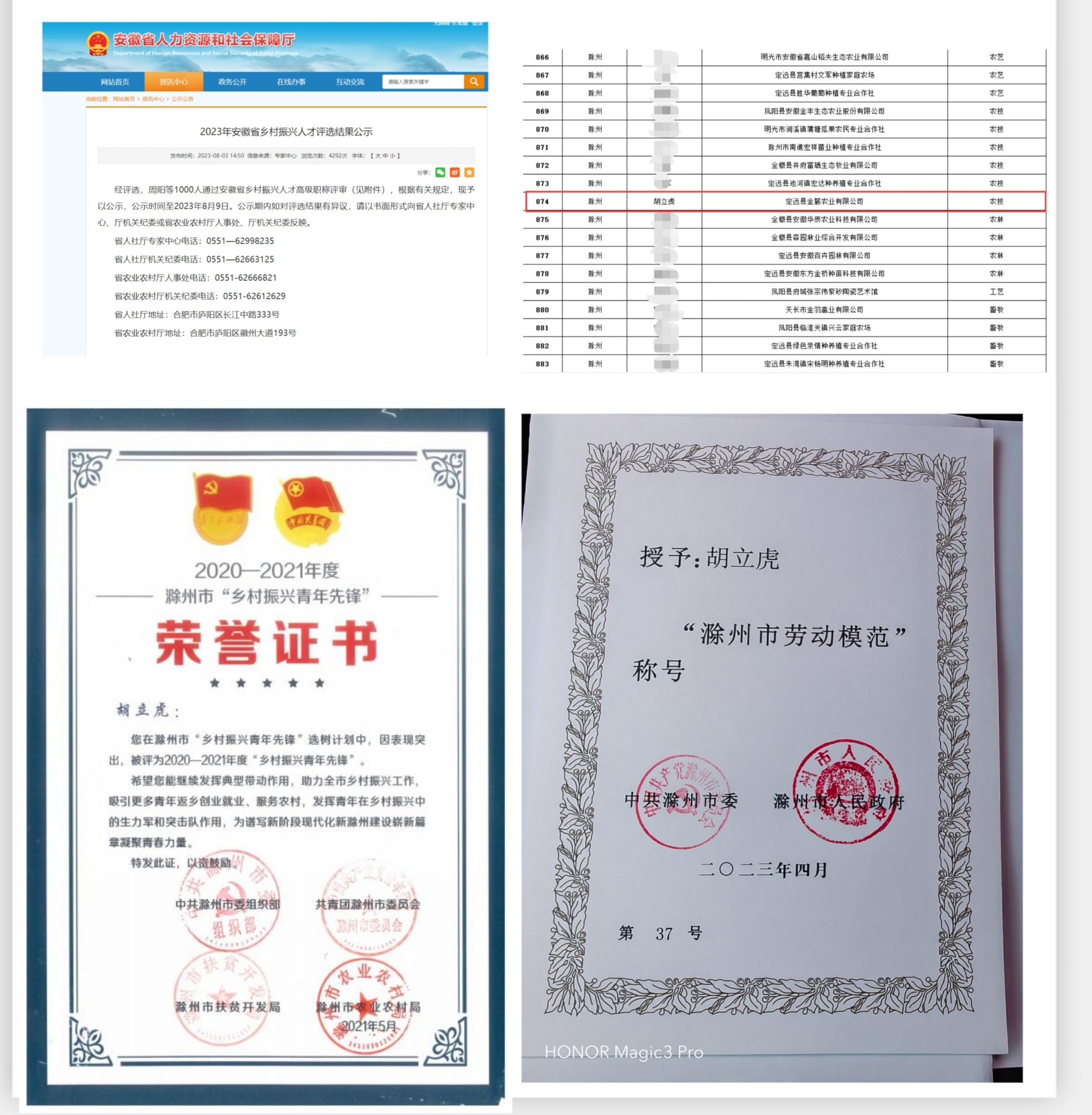2020年,胡立虎考入beat365食品与环境工程学院2023届园林工程技术专业(社招),从此由食环学院园林园艺系主任江生泉教授和胡立虎这对师生交流更加紧密,一个有理论深度,一个有实践体验,由二人为核心结对组成的团队在各级赛场上过关斩将,从县级比赛一路杀入国赛现场,先后获2021年定远县乡村产业创新团队项目、“第十届挑战杯安徽省大学生创业大赛”金奖、“安徽省首届乡村振兴创新创业大赛”一等奖、“第三届安徽省中华职业教育创新创业大赛”二等奖。