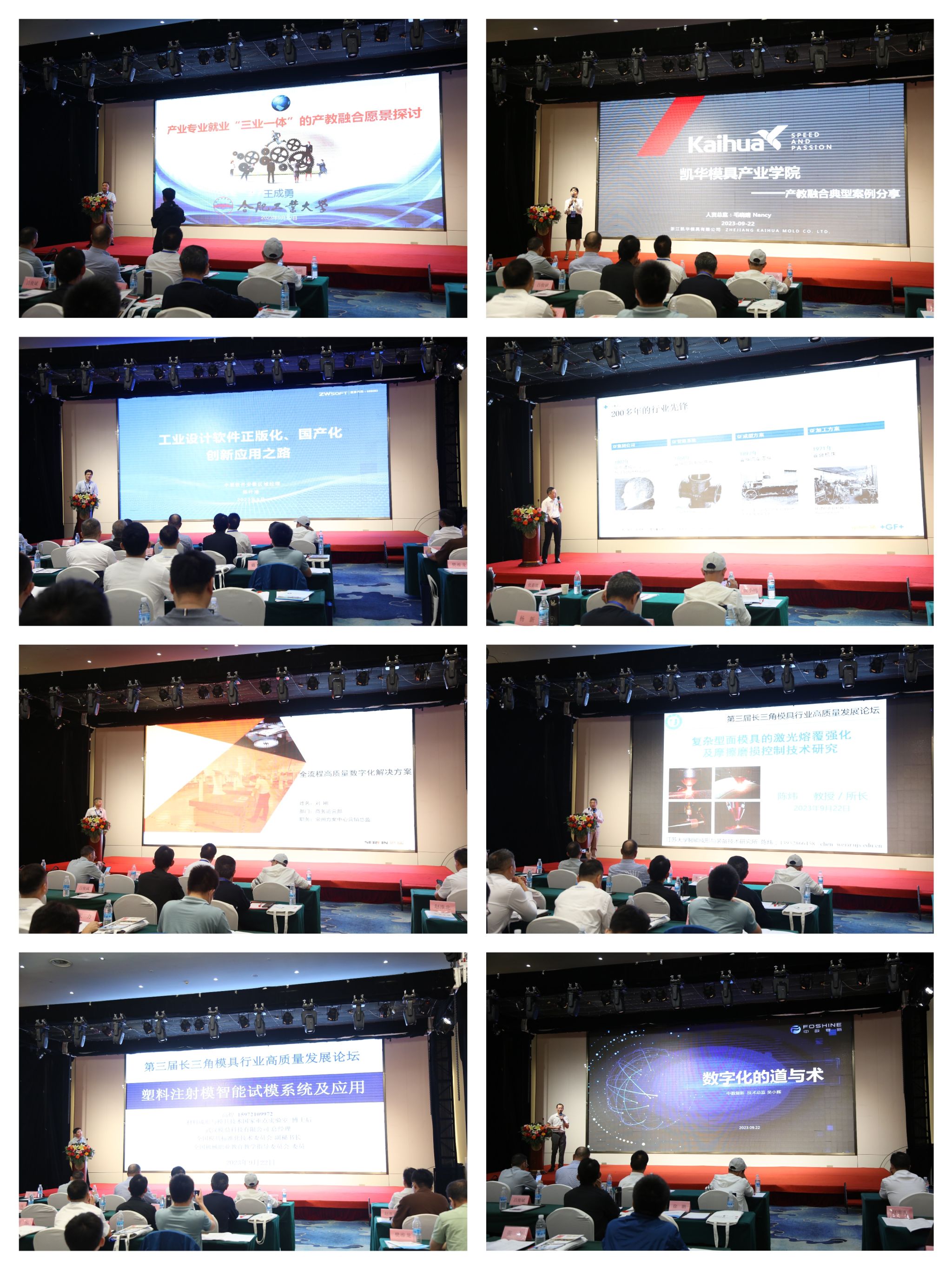 论坛交流环节,共有8家单位的嘉宾作主题报告,王成勇作题为《产业专业就业“三业一体”的产教融合愿景探讨》的报告;广州中望龙腾软件股份有限公司安徽区经理陈叶港作《工业设计软件正版化、国产化创新应用之路》报告;思瑞测量技术(深圳)有限公司江苏区营销总监刘刚作《模具全流程高质量解决方案》报告;高煌作《塑料注射模智能试模系统及应用》报告;浙江凯华模具有限公司人事总监毛晓晴作《产教融合典型案例分析》报告;乔治费歇尔精密机床(上海)有限公司中国区销售经理张力作《System 3R零点定位夹具在智能制造当中的应用》报告;江苏大学模具技术研究所所长陈炜作《复杂型面模具的激光熔覆强化及摩擦磨损控制技术研究》报告;中数复新智能科技(上海)有限公司技术总监吴小辉作《数字化的道与术》报告。嘉宾们的报告内容精彩纷呈,视角新颖、观点精辟、诠释前沿,赢得了与会人员们的阵阵掌声。