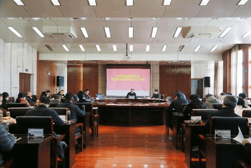 教务处处长唐义武传达学习了上级关于优化调整专业结构的相关政策文件,招生就业处副处长徐云龙汇报了近三年招生就业形势及2024年招生计划有关情况。