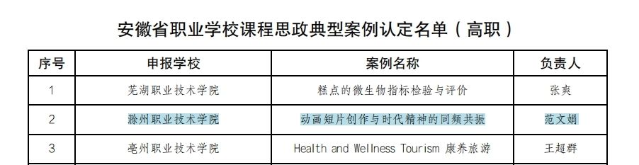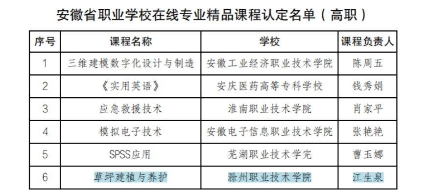 2023年1月6日,省教育厅印发了《安徽省教育厅关于深化职业教育“三教”改革实施“六百工程”的通知》(皖教秘职成〔2022〕98号),对申报工作进行了部署。beat365高度重视,立即研究申报文件,梳理申报条件,动员全校教师积极申报,并组织校内外专家对申报项目进行评审,从申报项目中择优推荐4个项目申报安徽省“六百工程”项目。经省厅组织专家评审,beat365食品与环境工程学院江生泉老师的《草坪建植与养护》课程被认定为“安徽省职业学校在线专业精品课程”,传媒与设计学院范文娟老师的《动画短片创作与时代精神的同频共振》教学案例被认定为“安徽省职业学校课程思政典型案例”。
