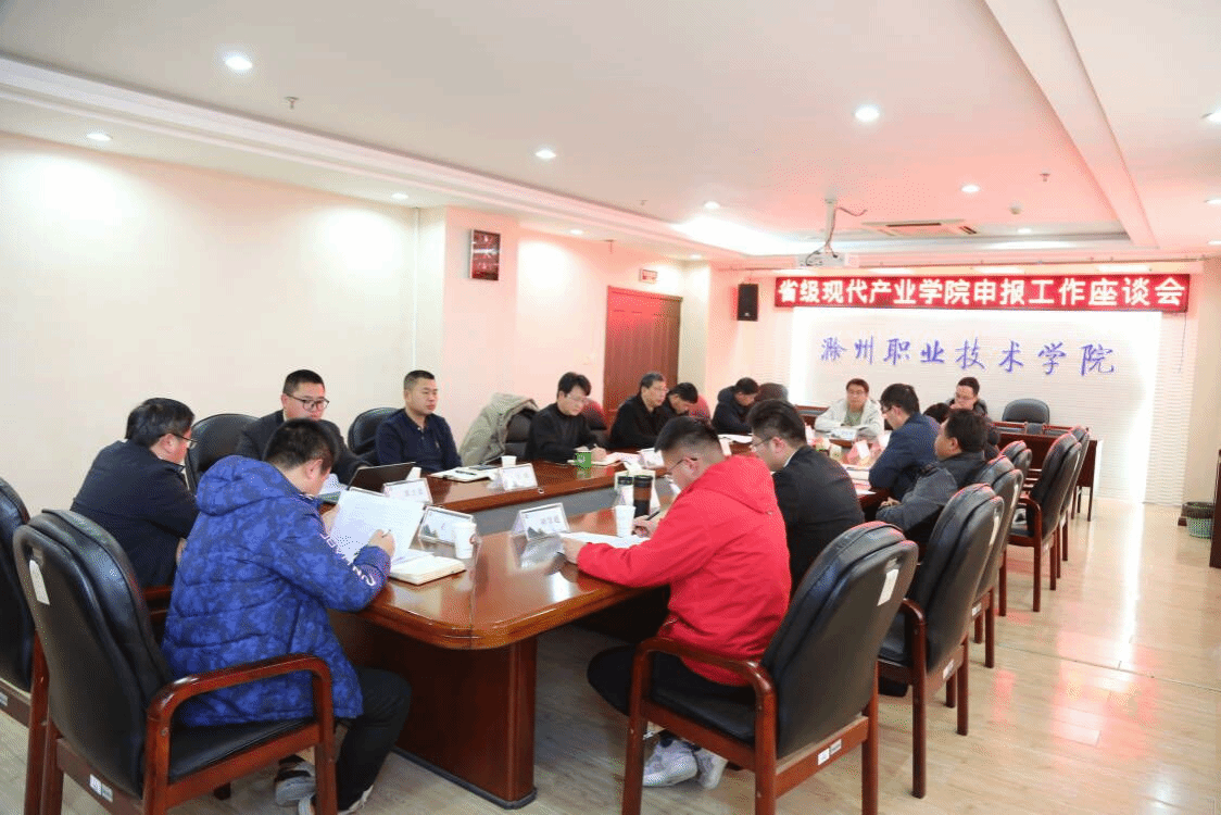 1月4日下午,学校在综合楼804会议室召开省级现代产业学院申报工作座谈会,市经信局副局长樊士璐,市发改委副主任樊红兵,校党委委员、副校长苏有良出席会议,教务处、科技处、招生就业处、电气工程学院、机械与汽车工程学院主要负责同志及滁州力神新能源科技有限公司、滁州悦达实业有限公司、安徽德电扬子汽车有限公司、安徽鲲鹏装备模具制造有限公司、安徽全柴动力股份有限公司、隆基乐叶光伏科技有限公司、东方日升(安徽)新能源有限公司、滁州捷泰新能源科技有限公司、安徽旭合新能源科技有限公司等9家企业代表参加会议。会议由苏有良主持。