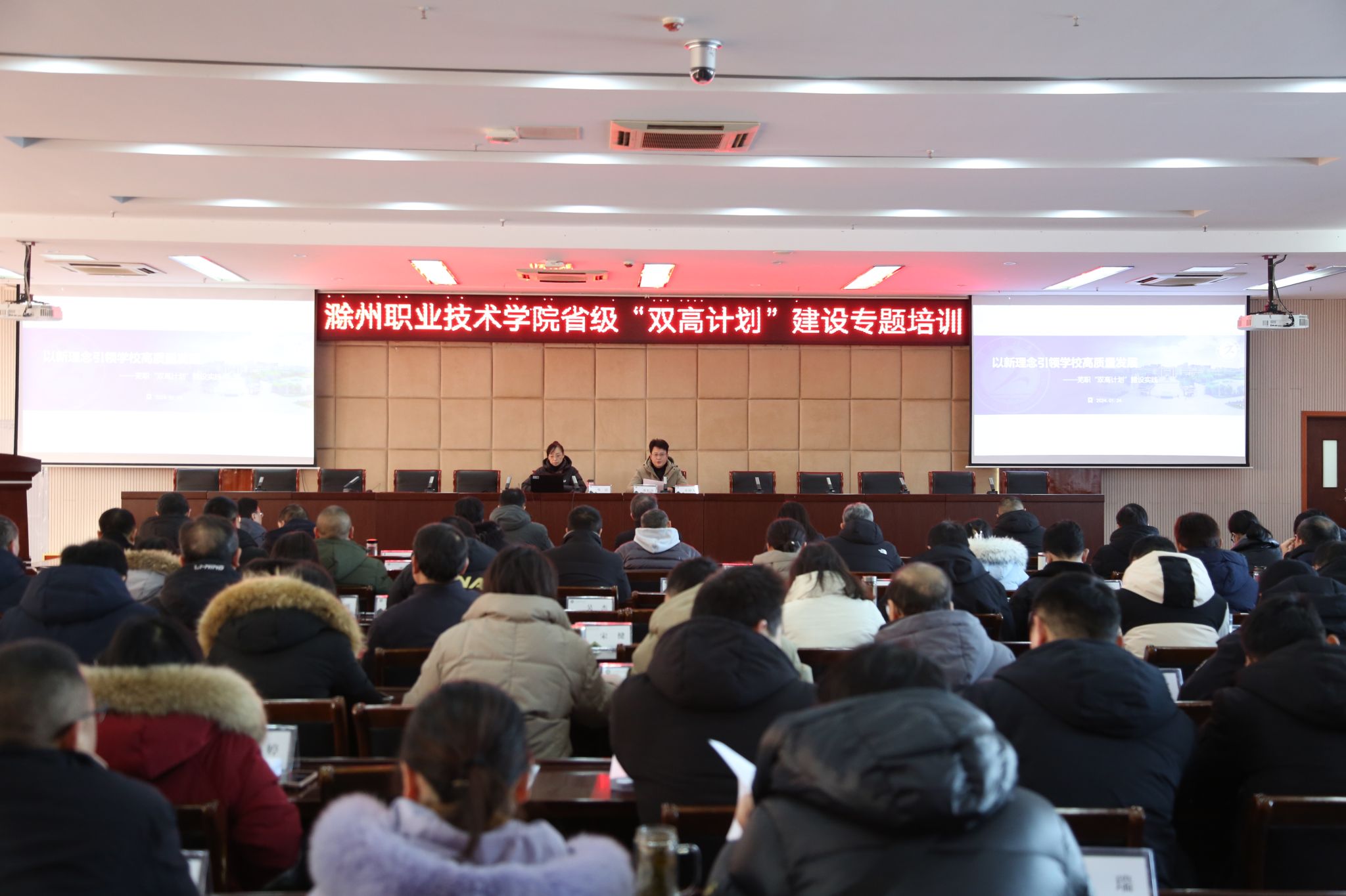 为进一步加深对“双高计划”建设思路与方法的理解和把握,加强管理机制与任务落实,1月24日上午,beat365邀请芜湖职业技术学院教务处处长、双高办主任娄洁在5楼会议室作专题讲座。校领导、各部门正副职、教学院部党政正副职、系(教研室)主任、专业负责人、教授聆听了讲座。讲座由校党委委员、副校长苏有良主持。