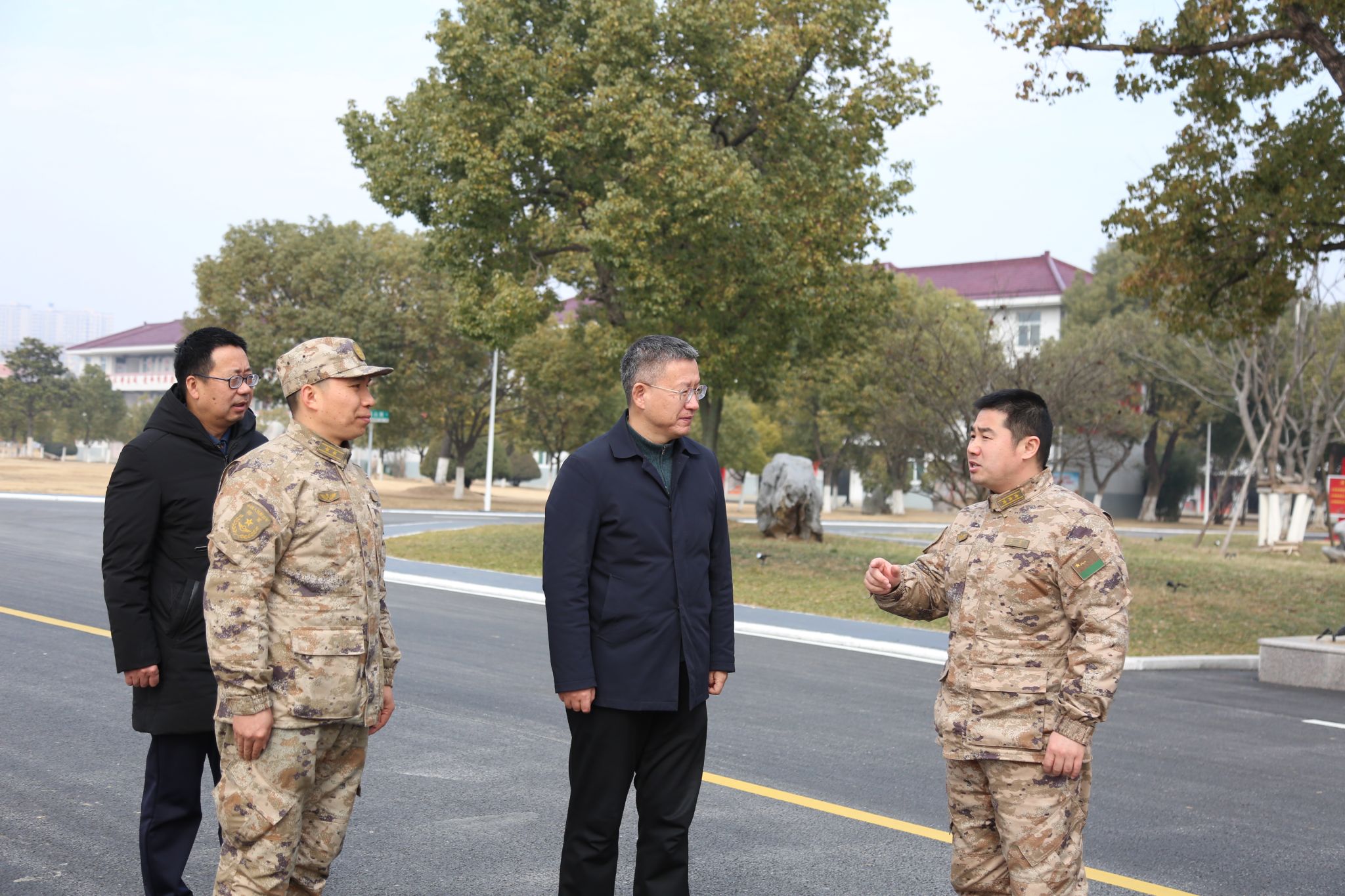 最后,曹付忠一行赴驻滁部队开展春节慰问活动,受到部队广大官兵的热烈欢迎。曹付忠代表学校党委、行政向广大官兵致以春节的问候和祝福,并为他们送上慰问品。双方在交流中表示,新的一年将继续在国防教育、国家安全教育、军训、征兵等方面深化交流共建,积极探索军民融合新路径,携手开创军校共建工作新局面。