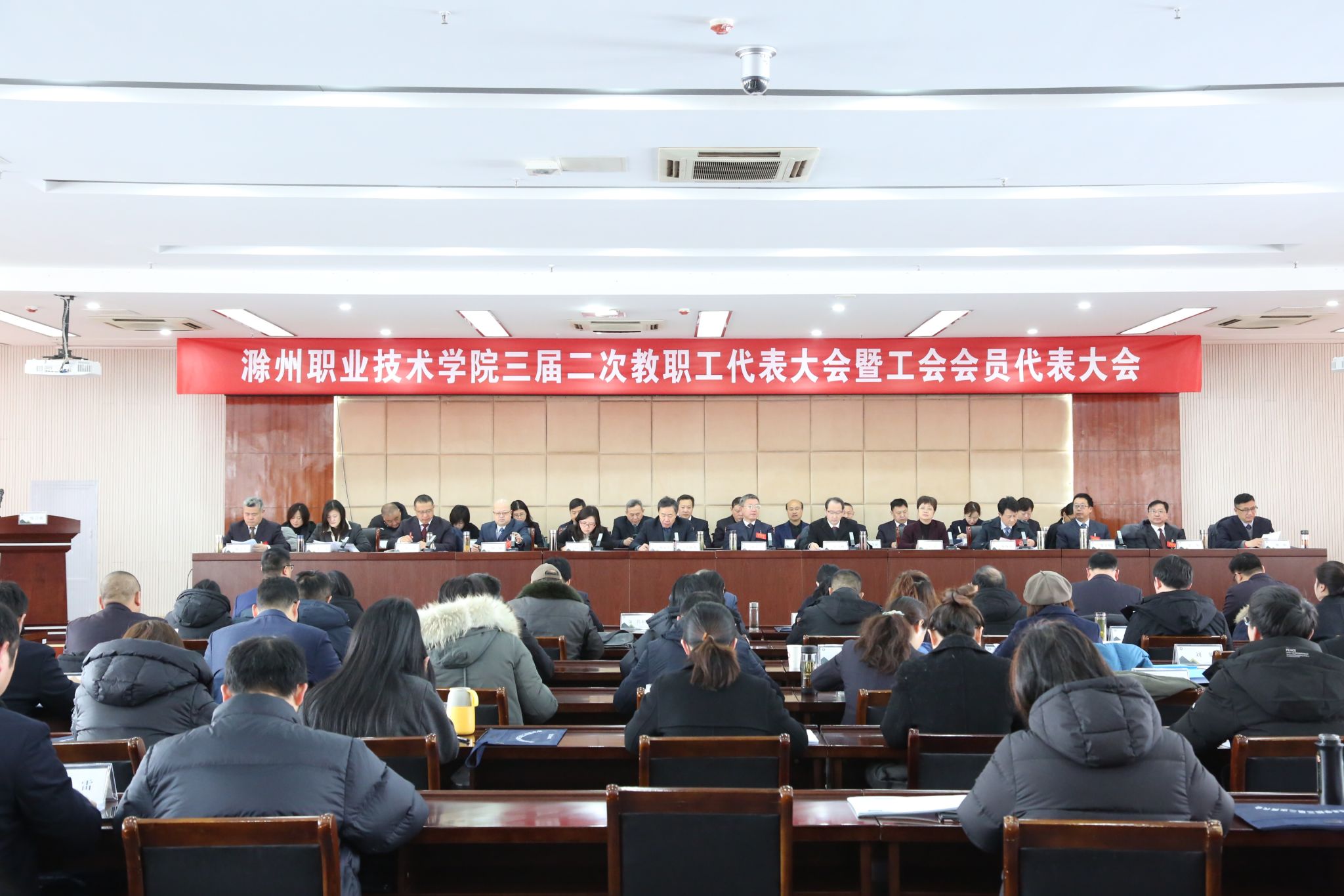 2月23日上午,beat365在综合楼5楼报告厅召开三届二次教职工代表大会暨工会会员代表大会。校党委书记曹付忠,校党委副书记、校长许雪峰,校党委副书记杨家庆,校领导江洁、孙静、苏有良、胡凼、李平权、李超、王冬、王宇、穆松、陈学军出席会议。各正式代表、列席代表、特邀代表参加了会议。大会由杨家庆主持。