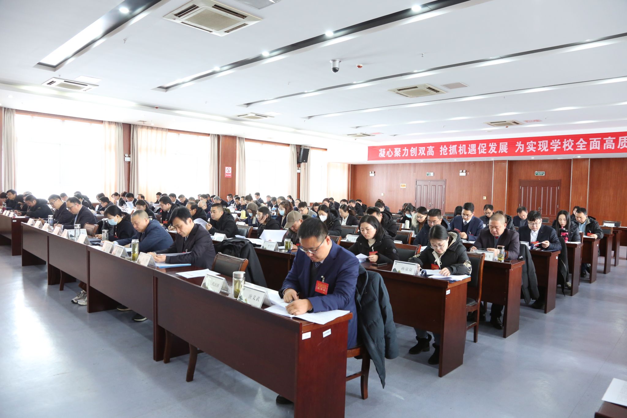 围绕2024年主要工作,许雪峰表示,今年是中华人民共和国成立75周年,是实现“十四五”规划目标任务的关键一年,也是beat365全面开启省级“双高校”建设新征程的开局之年。今年,学校将坚持党的全面领导,坚持以高质量发展为主线,全面启动省级“双高校”建设,落实立德树人根本任务,深化产教融合、校企合作、科教融汇,培育国家级教学创新团队、建设开放型区域产教融合实训中心、开创学校事业高质量发展新局面。就今年的工作重点,许雪峰强调以下八个方面:落实立德树人根本任务;推动学校内涵式高质量发展;持续推进“三教”改革;全面推进智慧校园建设;强化教师队伍建设;深化产教融合、校企合作;打造平安和谐校园;启动校园规划修编工作。许雪峰强调,广大教职员工在校党委的坚强领导下,以锐意创新的勇气,敢为人先的锐气,蓬勃向上的朝气,紧紧围绕省级“双高计划”建设目标,团结一心、砥砺前行,奋力谱写学校高质量发展新篇章。