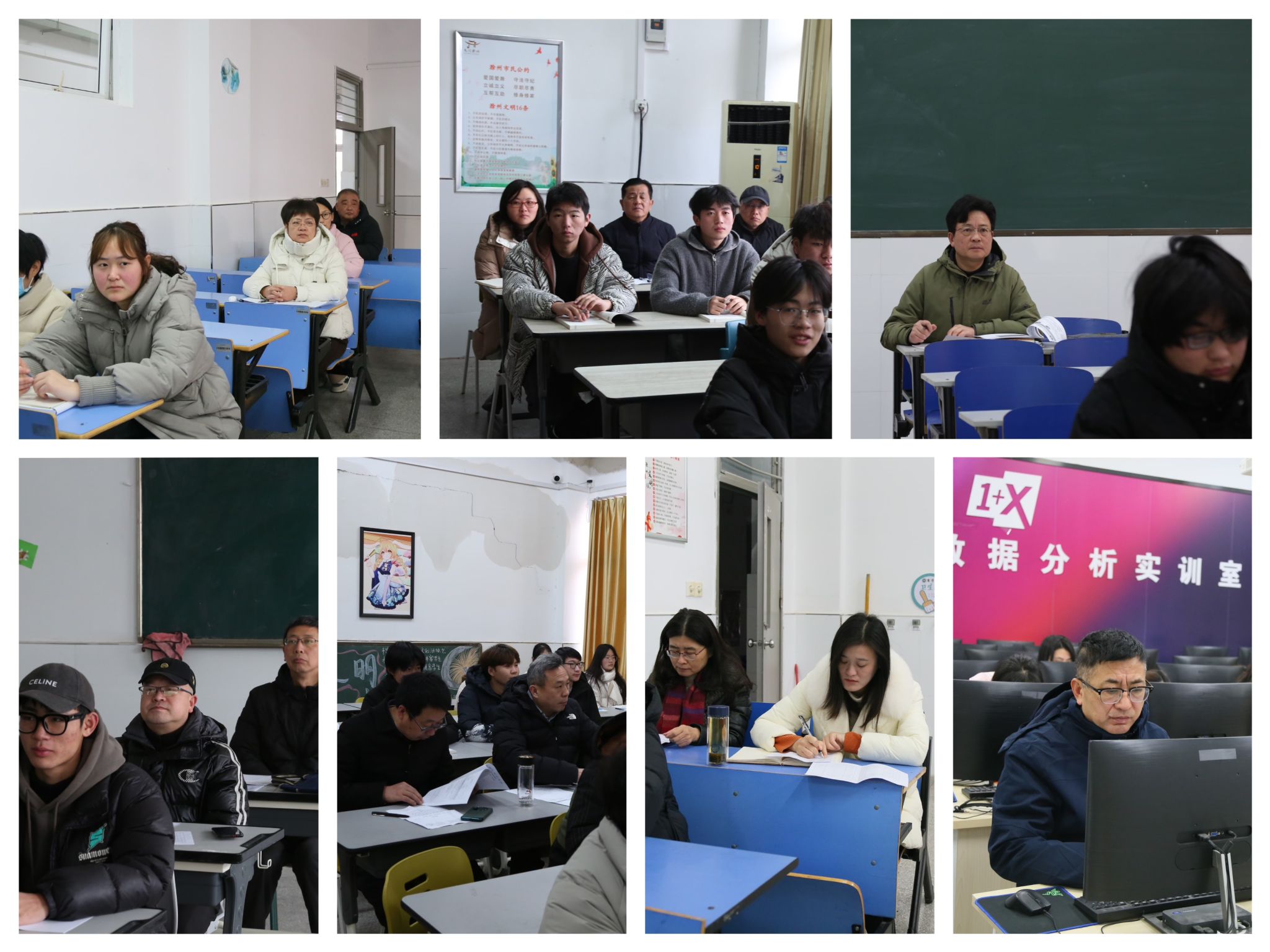 校党委委员江洁,党委委员、校纪委书记孙静,党委委员、副校长苏有良,党委委员、副校长胡凼,党委委员、工会主席李平权,党委委员、组织人事处处长王宇,校长助理、招生就业处处长穆松等深入课堂听课,真切了解和关心学生学习情况,并进行课堂记录。