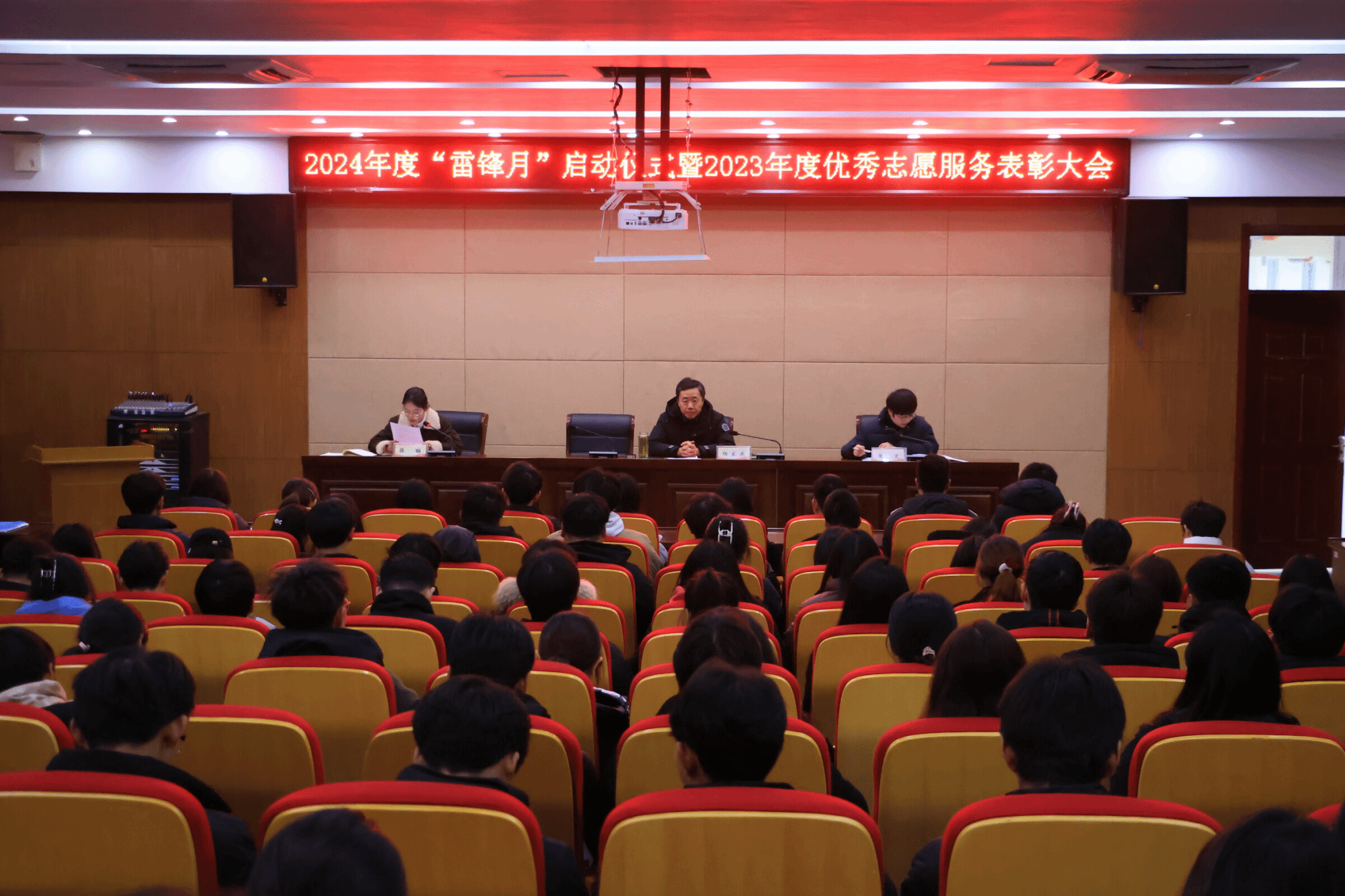 3月4日下午,学校2024年度“雷锋月”启动仪式暨2023年度优秀志愿者服务表彰大会于南阶205教室顺利举行。校党委副书记杨家庆出席会议并讲话,校团委副书记张文、张旸以及各二级学院团总支书记、青年志愿者学生代表参加会议。会议由张文主持。