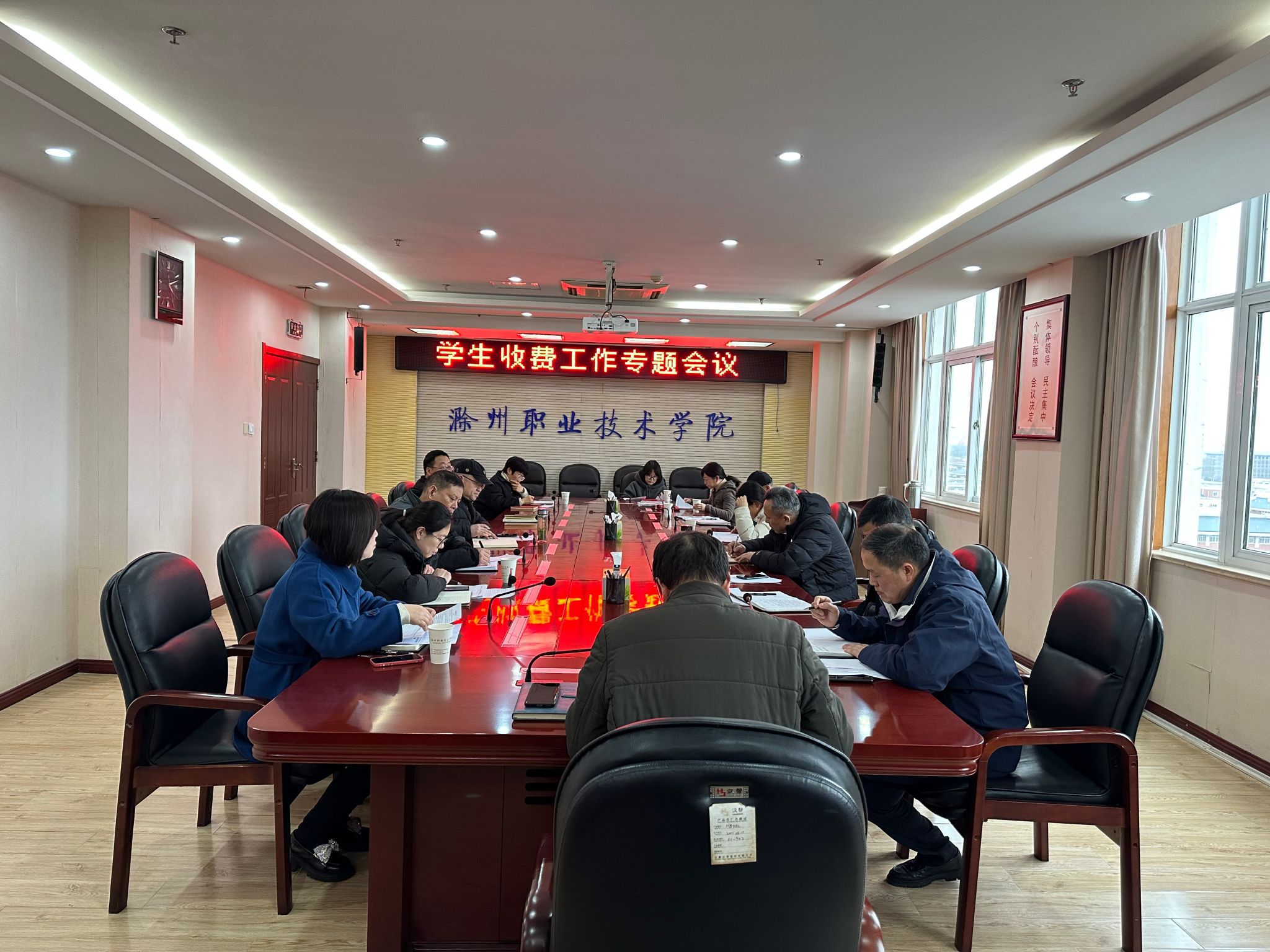 3月18日下午,学校召开学生收费工作专题会议,校党委委员、副校长胡凼,校党委委员、校工会主席李平权出席会议,学生工作处、计划财务处、后勤服务中心及各二级学院负责人参加本次会议。