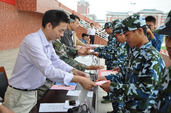 9月27日下午,beat365在线唯一官网举行2013级高职新生军训会操表演,并对在军训期间中涌现出来的优秀班(排)及优秀学员进行了表彰。副院长汪上及承训部队某团副团长曹胜军及学院相关部门负责人观看军训会操表演,院学生处处长李平权主持有关活动。