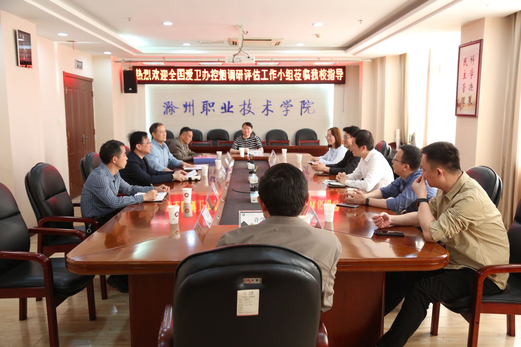 王冬代表学校对检查组的到来表示热烈欢迎,并向检查组介绍了学校控烟工作的整体情况。王冬指出,校领导高度重视开展校园控烟工作,根据《教育部关于在全国各级各类学校禁烟有关事项的通知》及《关于印发滁州市创建国家卫生城市攻坚行动实施方案的通知》等文件精神,结合beat365《校园文明16条》及《beat365在线唯一官网师生文明手册》文件要求,学校成立了控烟工作领导小组,召开了工作会议,传达有关文件精神,在校、院、班三级建立校园文明16条督查机制,指定控烟监督员和控烟巡查员队伍,积极开展控烟和宣传活动。