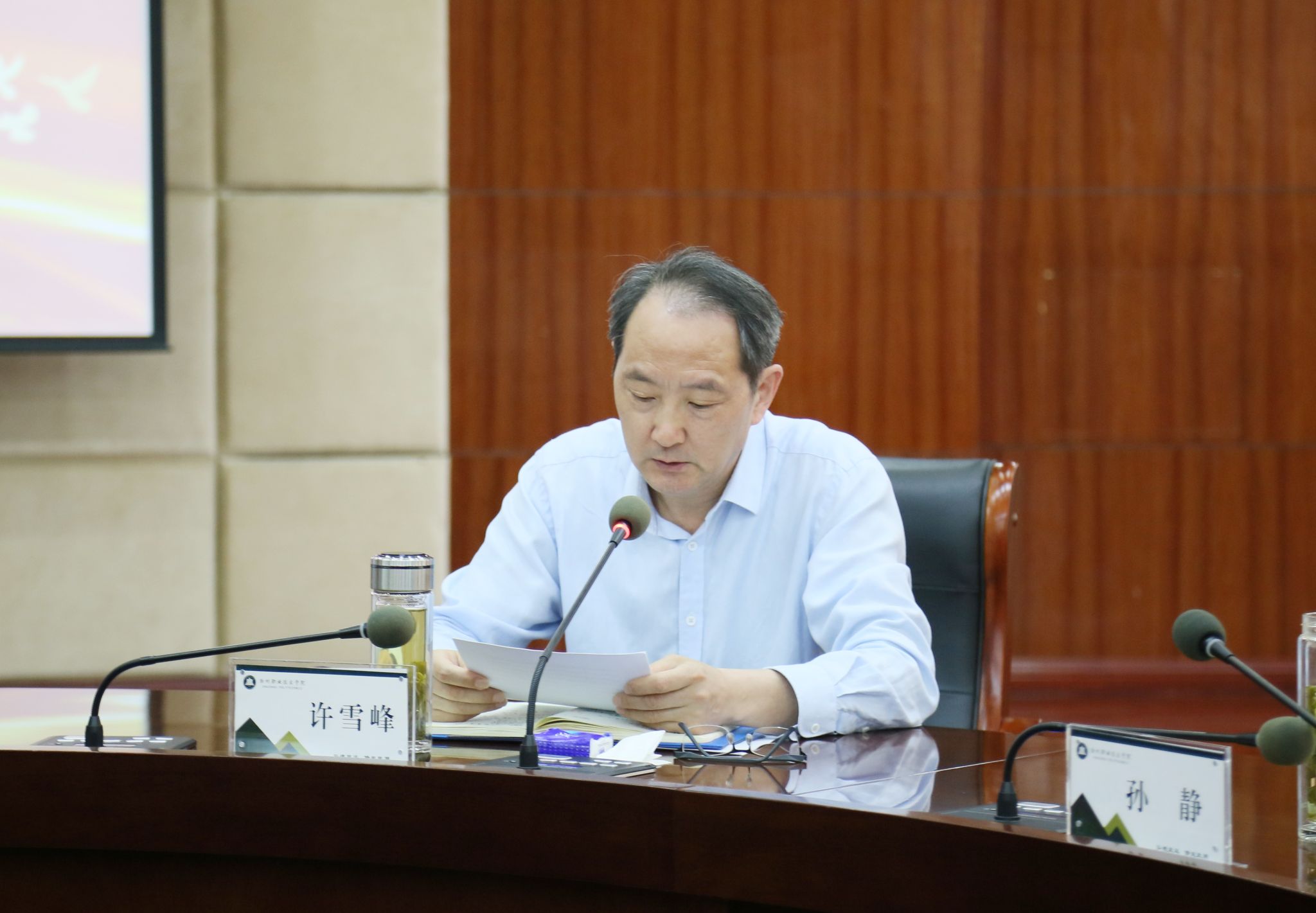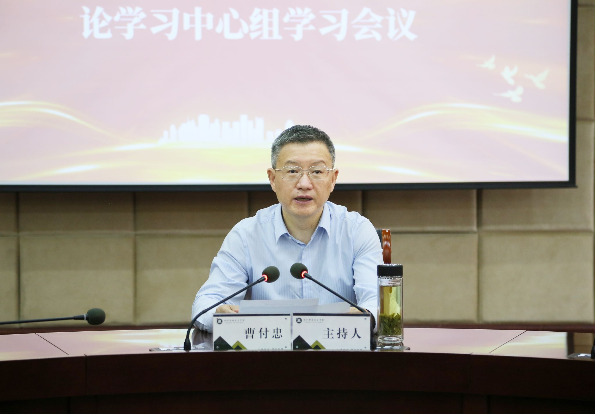5月17日上午,学校在综合楼十一楼会议室举行党纪学习教育读书班专题研讨暨党委理论学习中心组(扩大)学习会议,校党委书记曹付忠主持会议并讲话。校党委副书记、校长许雪峰,校党委副书记杨家庆,校领导孙静、王冬、王宇,各教学院部、各部门主要负责同志和列席中心组学习会议的有关负责同志出席会议。