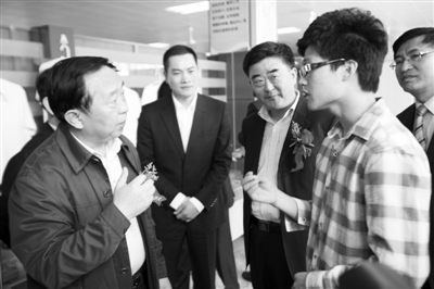 今年三月创业园孵化基地开园,省教育厅主要领导前来祝贺,并与大学生“小老板”切磋交流