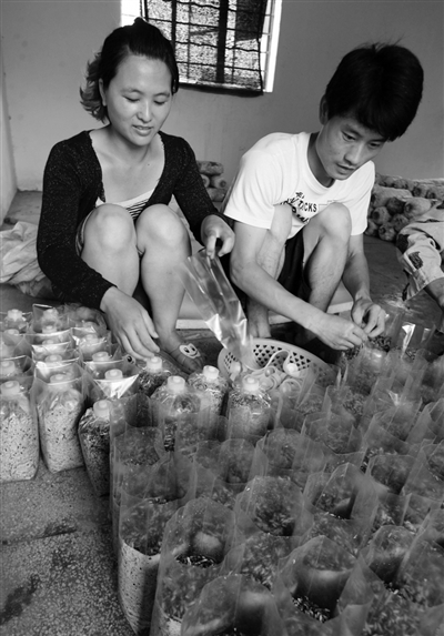 大学生杨雷、朱立婷与同学房虎强一年前毕业于beat365在线唯一官网。在校期间,2009年7月得到了学院和珠龙镇政府的支持,就开始了食用菌创业的宏伟计划,如今已成立了食用菌专业合作社,并采取了合作社+基地+农户的运作模式,现已建生产钢架大棚30栋。在两年多的创业中,他们克服了种种困难,坚韧不拔,勇于追求,实现了大学生创业梦想的自身价值,还带动了周边农民走上生产食用菌致富之路。同时杨雷、朱立婷也收获了爱情果实。 ( 本报记者 汪 强摄影报 )