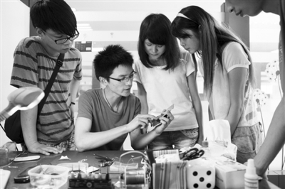 号称“红楼忆梦”团队的几位“小老板”王博文、杨祖桓、宋宏卫、纪承团结创业,影像设计、数码软件、快递业务,主营个性化数码瓷器、服装、拷印工艺,近月内,已为各校区学生制印时尚纪念衫数千件,成绩斐然。