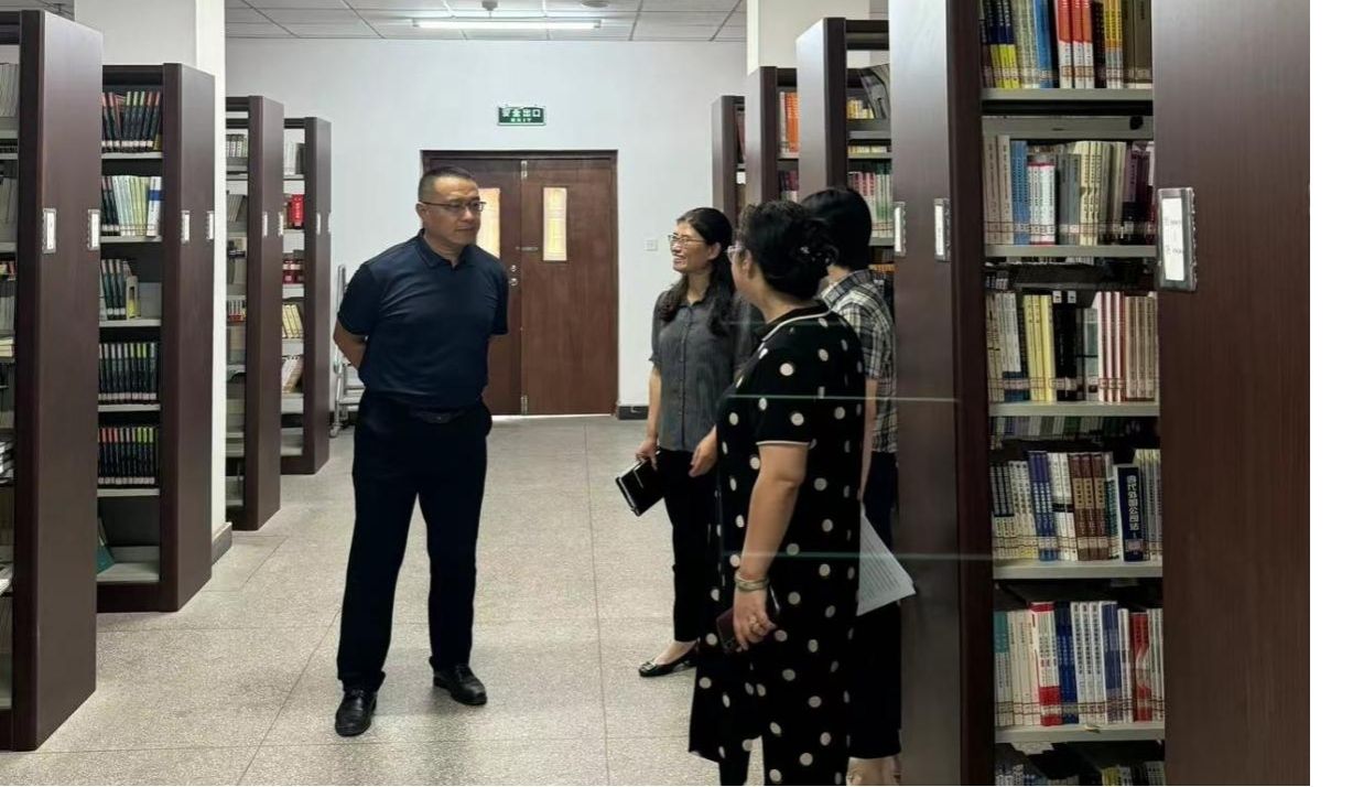 李超在图书馆逐层进行走访,实地察看了图书馆书库的藏书情况、分类摆放、借阅流程等工作。李超对图书馆在资源建设、服务师生方面所做的努力给予了充分肯定,并同馆员们进行了交流。
