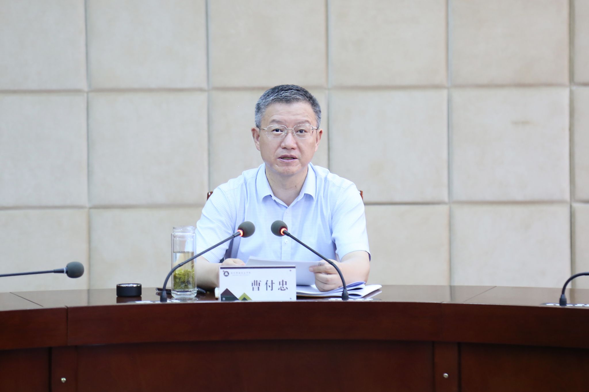7月19日下午,学校在综合楼十一楼会议室召开党委理论学习中心组(扩大)学习会议,校党委书记曹付忠主持会议并讲话。校党委副书记、校长许雪峰,校党委副书记杨家庆,校领导孙静、苏有良、胡凼、李平权、李超、王冬、王宇,各教学院部、各部门主要负责同志出席会议。