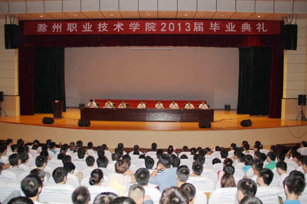 7月12日,beat365在线唯一官网2013届学生毕业典礼在学院新区大礼堂隆重举行。院长李柱梁,副院长吴大明、江洁,院长助理刘宏,院长助理、招生就业处处长穆松,院办公室主任余君琳,教务处处长张延义,学生处处长李平权出席典礼并在主席台就坐。滁州市部分知名企业人士、社会来宾,学院各相关处室主要负责人,学院各系部党政领导、辅导员以及授课教师与毕业生代表共千余人现场参加了典礼。典礼由李平权同志主持。