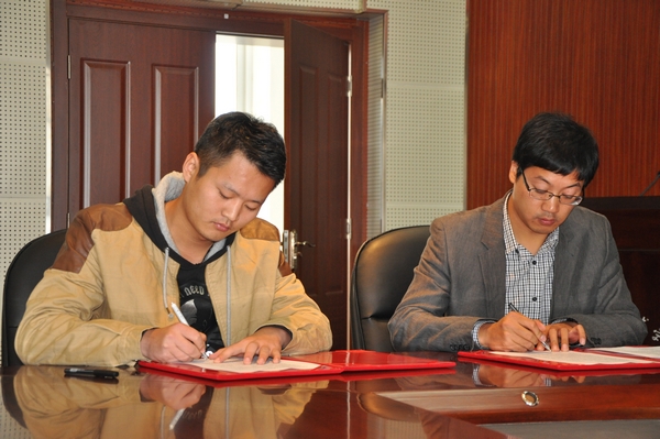 德黎仕公司副总经理张林敏与艺术设计系党总支书记陈震互换定向培养匾牌;企业代表与学生代表签署定向委培协议。