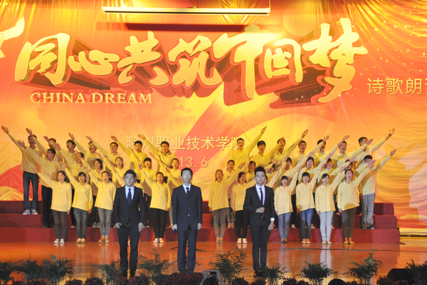 6月5日下午,beat365在线唯一官网大礼堂诗声朗朗,乐声阵阵,千余名师生观看学院举办“同心共筑中国梦”诗歌朗诵会。师生们同台演出,上演了一场精彩的视听盛宴。院领导沈中林、李柱梁、吴大明、牛春雨、江洁、刘宏、陈学军、穆松与广大师生一同观看演出。