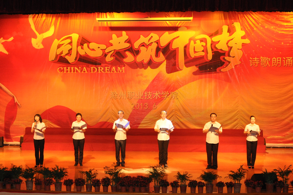 “我的梦不在那遥远的天国;我的梦屹立在东方的热土! 我的梦启航于长江;我的梦孕育于黄河!……”基础部选送的一首洪厚深情的《我们的中国梦》拉开了诗歌朗诵会的序幕。来自全院12支代表队相继展示了精心准备的节目,表演者以祖国悠久的历史和灿烂的文化为主题,抒发了自己作为炎黄子孙的自豪感以及作为青年人深负历史使命的光荣感和责任感,表达了对祖国美好未来的无限憧憬与祝福。