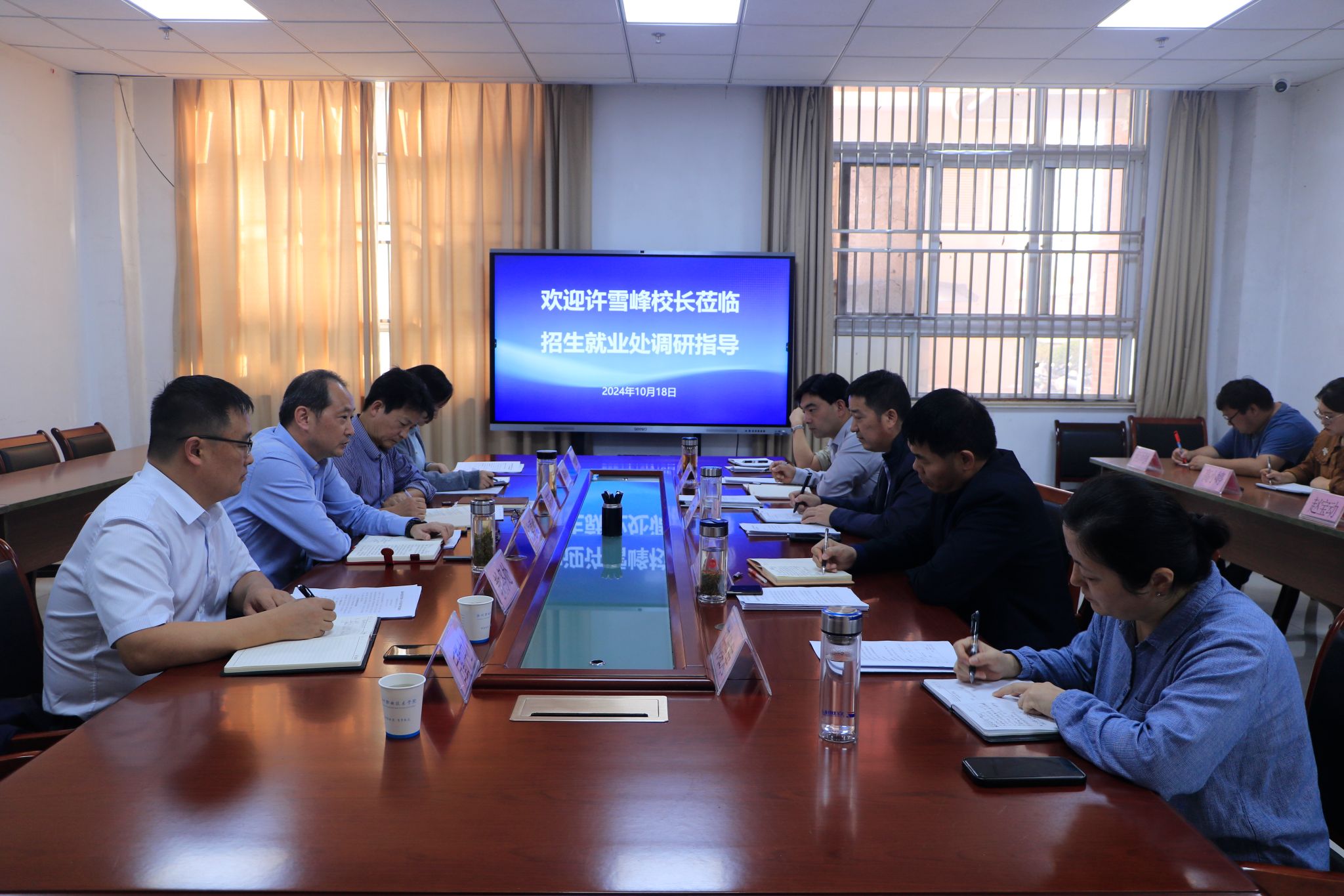 调研结束后,许雪峰一行还与招生就业处的工作人员进行了深入的交流和座谈,就如何进一步做好各项工作进行了广泛的讨论和探讨。大家纷纷表示,将认真贯彻落实许雪峰的讲话精神,以更加饱满的热情和更加扎实的工作作风,推动招生就业、校企合作和创业创业工作再上新台阶。