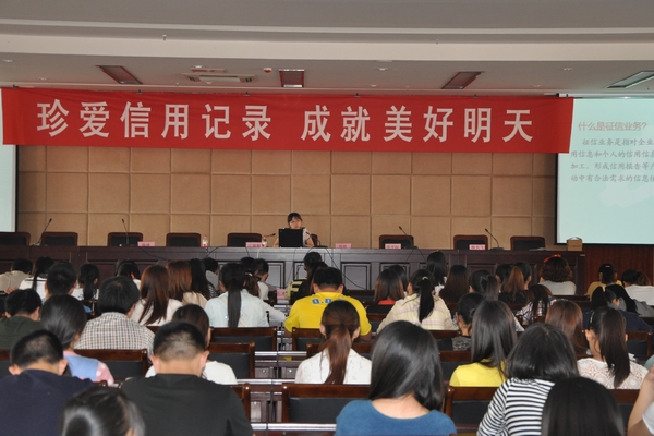 10月11日,beat365在线唯一官网邀请中国人民银行滁州市中心支行营业室副主任江婧枫同志和调查统计科的徐清同志就征信知识做了专题报告。来自beat365在线唯一官网各系的260名申请助学贷款的学生代表和相关辅导员仔细聆听了该专题报告。