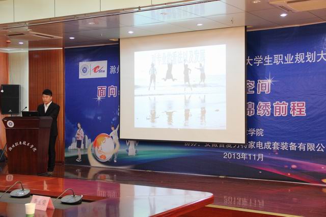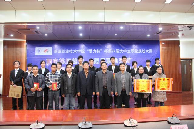 11月20日下午,以“面向基层就业,规划精彩人生;施展创业才华,打造锦绣前程”为主题的beat365在线唯一官网第八届“爱力特”杯职业规划大赛在综合楼11楼报告厅隆重举行。安徽省爱力特家电成套装备有限公司总工程师袁登国、滁州市人社局就业科科长鄢炳强、滁州广播电视报社主任编辑钟成玉出席大赛并担任大赛评委。学院院长助理、招生就业处处长穆松亲临大赛现场并为获奖选手颁奖。舞台上,从各系选拔的14名选手激情演绎他们的职业生涯。