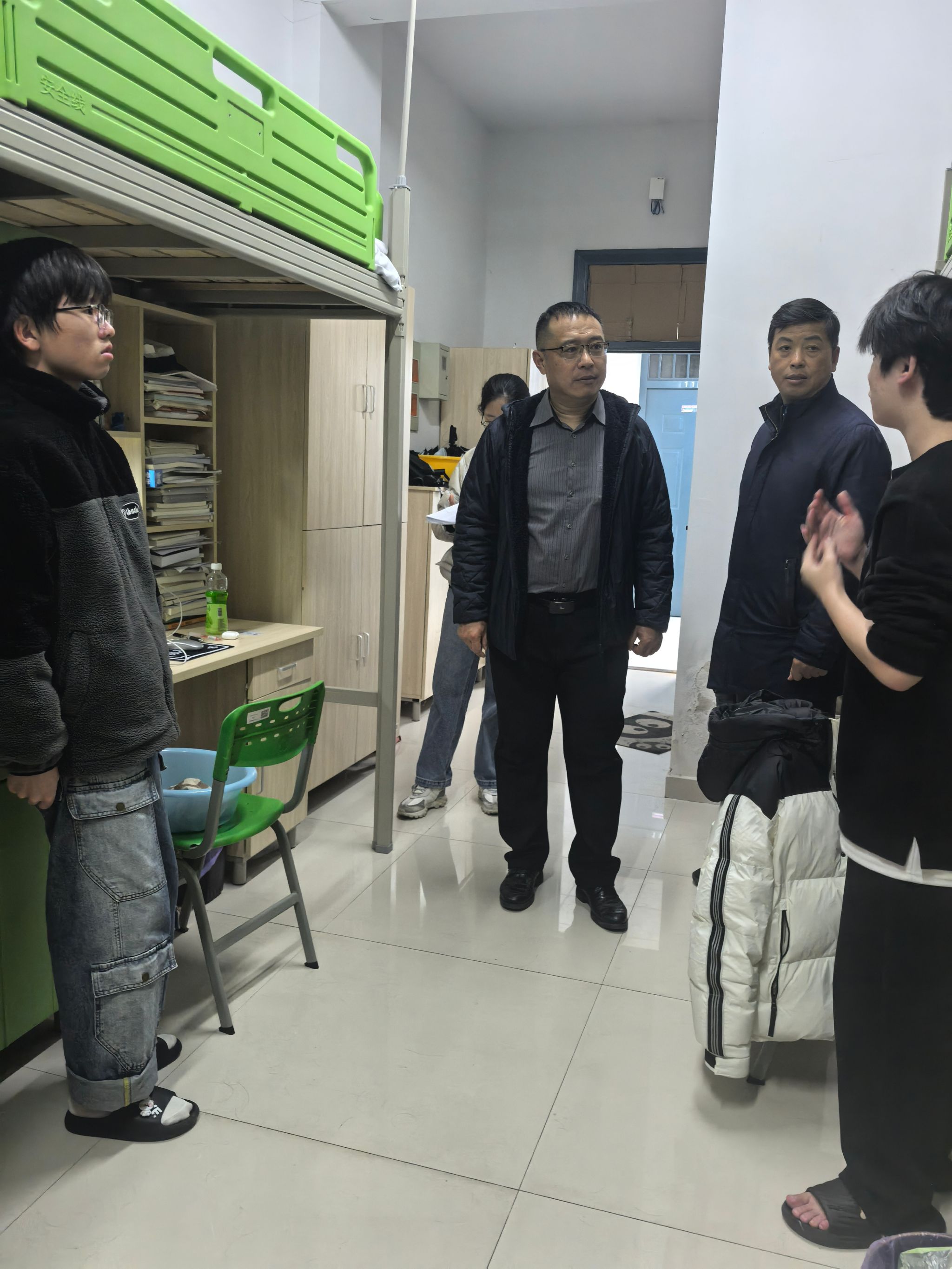 为进一步落实校党委关于加强校园安全管理的相关要求,确保学生学习生活环境安全有序,12月3日晚,校党委委员、商学院党总支书记李超、管理学院党总支书记耿学刚、商学院党总支副书记李晓辕等一行深入学生宿舍走访,排查学生宿舍安全隐患。
