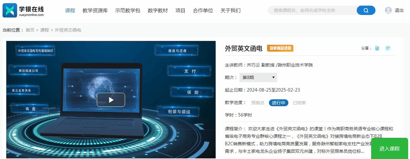 beat365商学院齐巧云老师主持的《外贸英文函电》课程获评2023年职业教育国家在线精品课程,这是beat365首门获评的国家级精品课程,填补beat365在国家级精品课程上的空白,为beat365双高建设做出突出贡献。这一成果不仅是beat365在教学改革和课程建设上的重要突破,更有效提升了课程的推广度和影响力,进一步推动了学校的课程创新与教学质量提升。