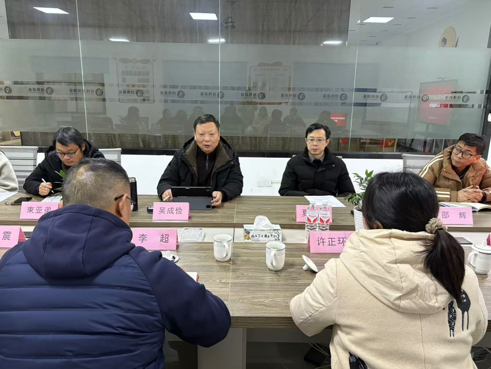 随后考察组一行与滁州经纬装备科技领导班子举行校企合作恳谈会,夏政荣总经理作了企业发展及未来展望的简要介绍。