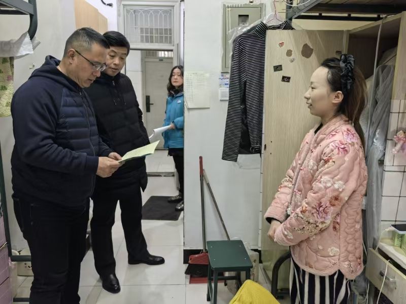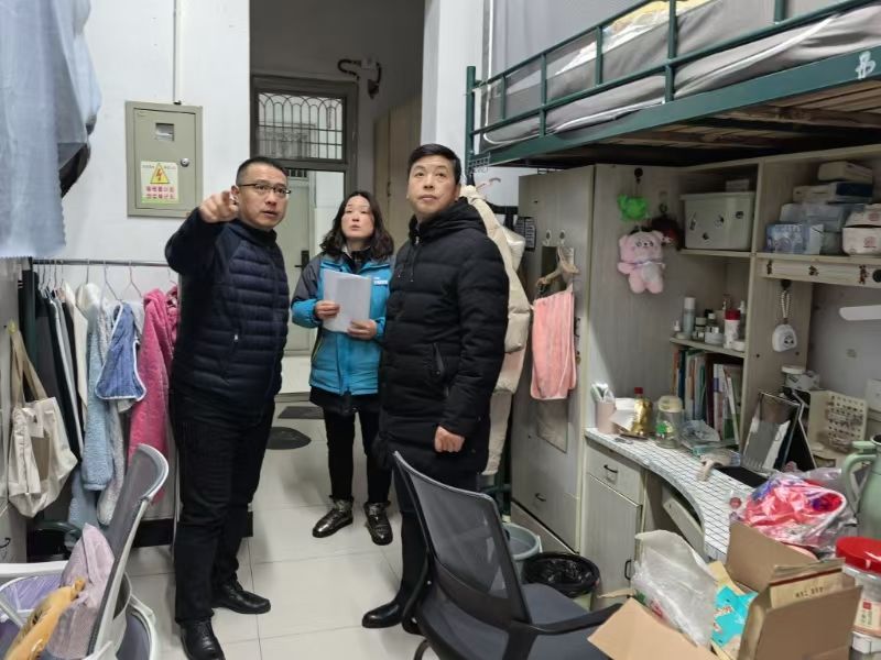 在座谈会开始前,李超一行前往2号宿舍楼,仔细查看了宿舍的门窗、用电安全、消防安全以及卫生状况等方面。