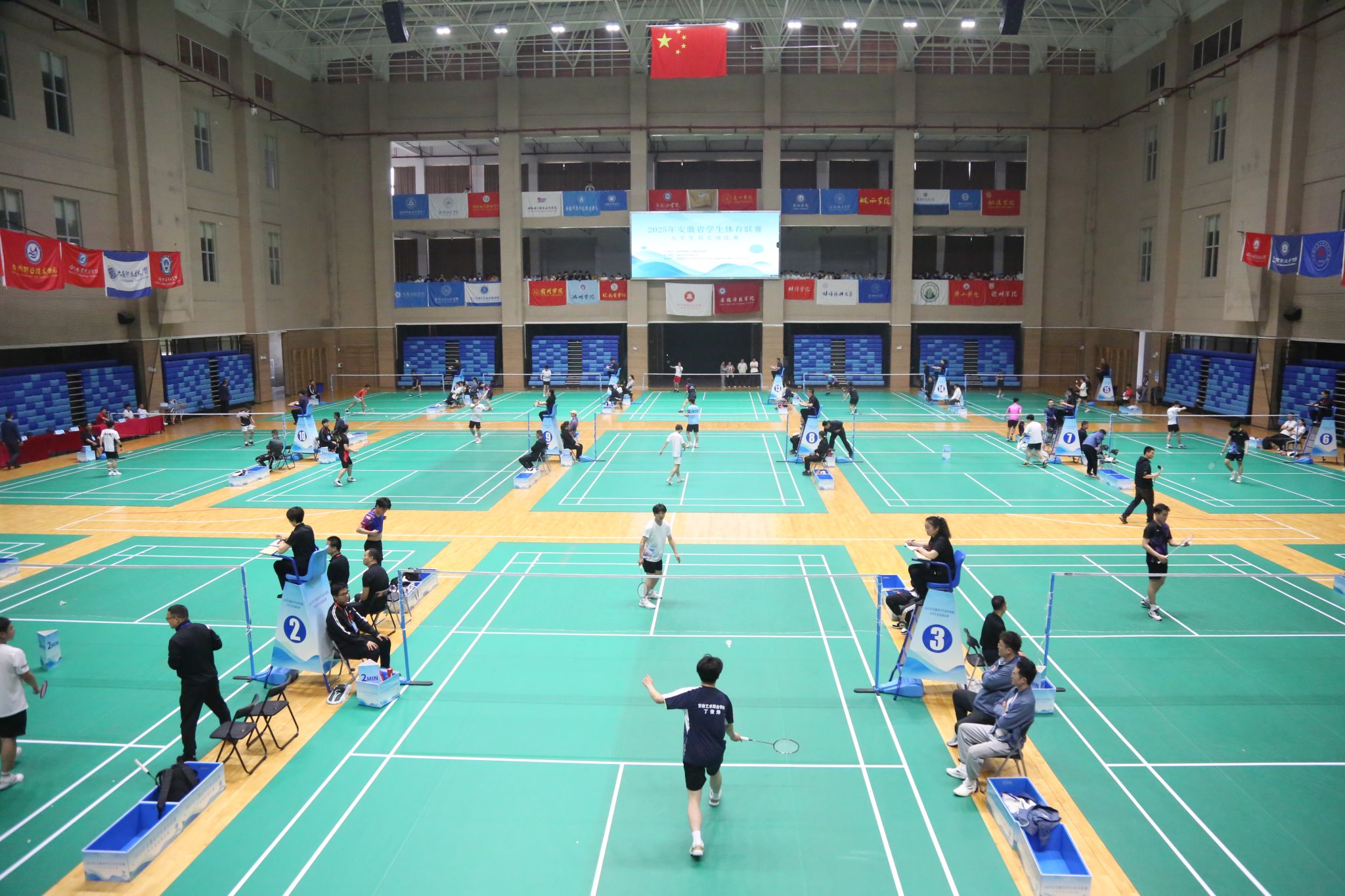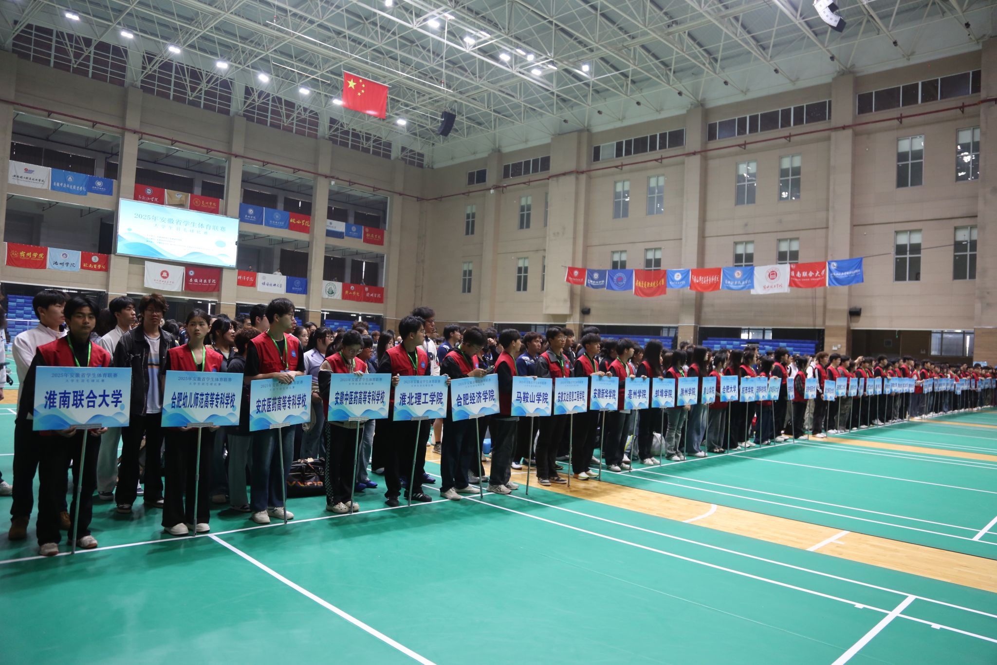 4月23日上午8时,2025年安徽省学生体育联赛大学生羽毛球比赛开赛仪式在beat365体育馆隆重举行。安徽省教育厅体卫艺处三级主任科员陆涛,安徽省学校体育协会副理事长、秘书长马纯,滁州市教育体育局副局长李志,beat365在线唯一官网党委委员、宣传统战部部长王冬,比赛监督陈有忠教授,比赛技术代表王淮勘教授,比赛裁判长何俊如出席,各高校代表队领队、教练员、运动员参加仪式。开幕式由安徽科技学院滁州校区党工委副书记施培智主持。