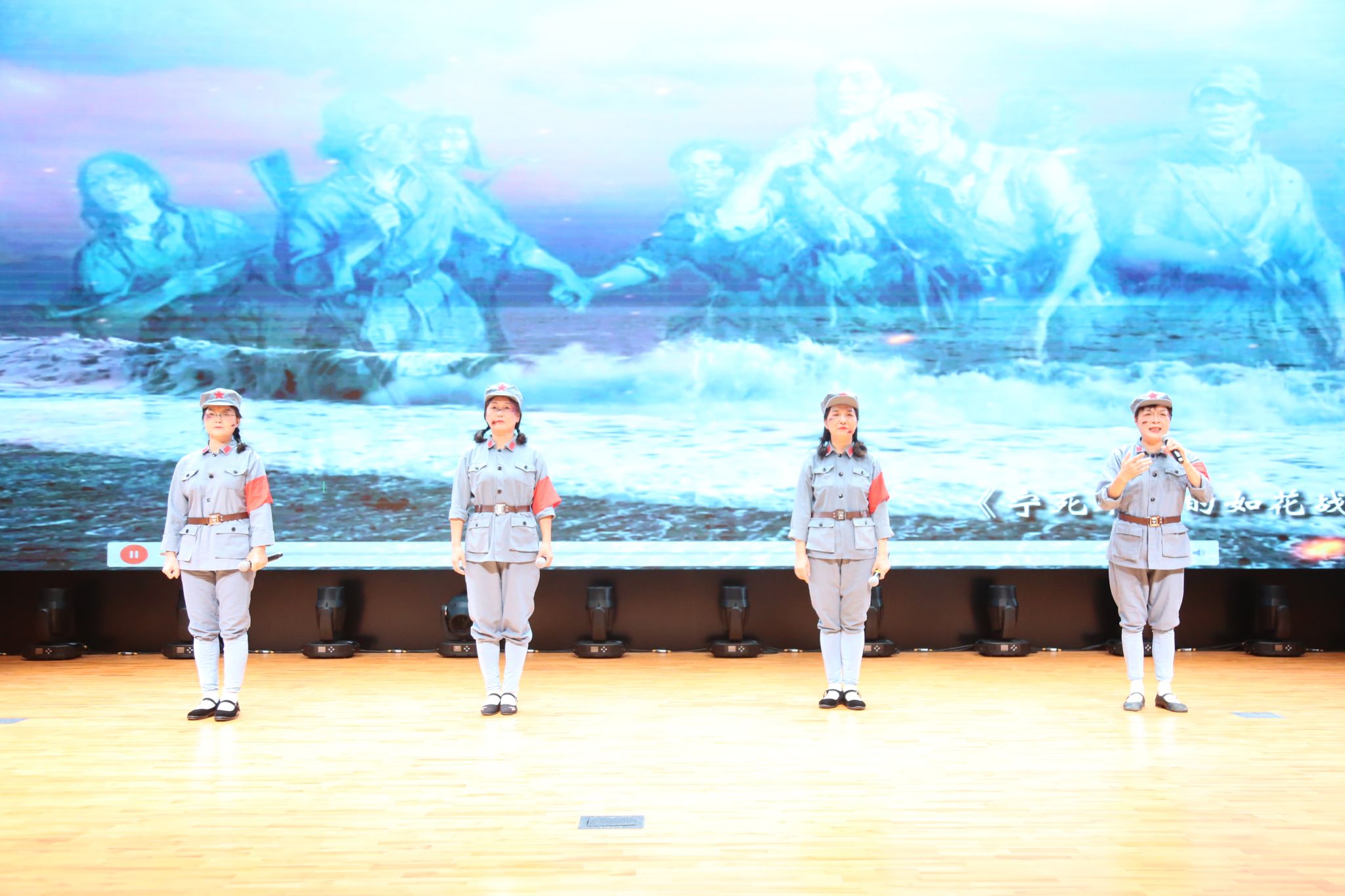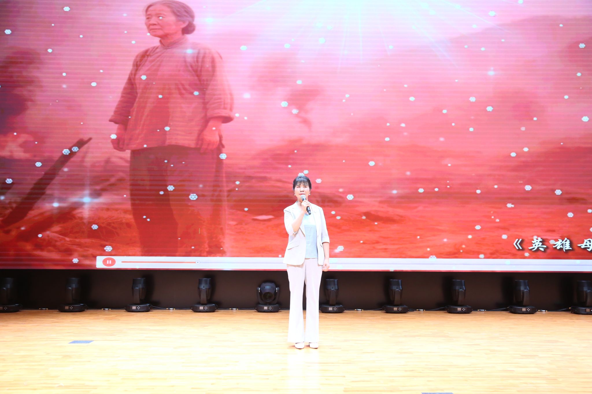 “英雄礼赞”篇章聚焦抗战中的英雄人物和事迹。诗朗诵《英雄母亲邓玉芬》 《我的心灵被你们震撼了——娃娃兵》《红铁》深情歌颂了革命母亲与参军儿童的家国大义以及千千万万为抗战胜利壮烈殉国的英雄儿女。微党课《承将军志,铸民族魂》则讲述了“神行太保”罗炳辉将军的英勇事迹,赢得了现场阵阵掌声。