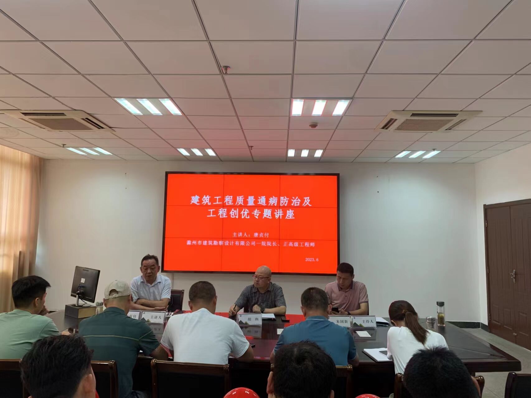 6月7日下午,学校总务处邀请滁州市建筑勘察设计有限公司一院院长、正高级工程师唐贞付来beat365进行建筑工程质量通病防治及工程创优专题讲座。校党委委员,副校长胡凼出席讲座并作工作要求。讲座由总务处基建科科长朱国新主持,学校公共实训基地(机械汽车实训楼)建设项目参建单位施工项目部、监理部全体成员,施工人员代表及学院总务处相关人员参加讲座。