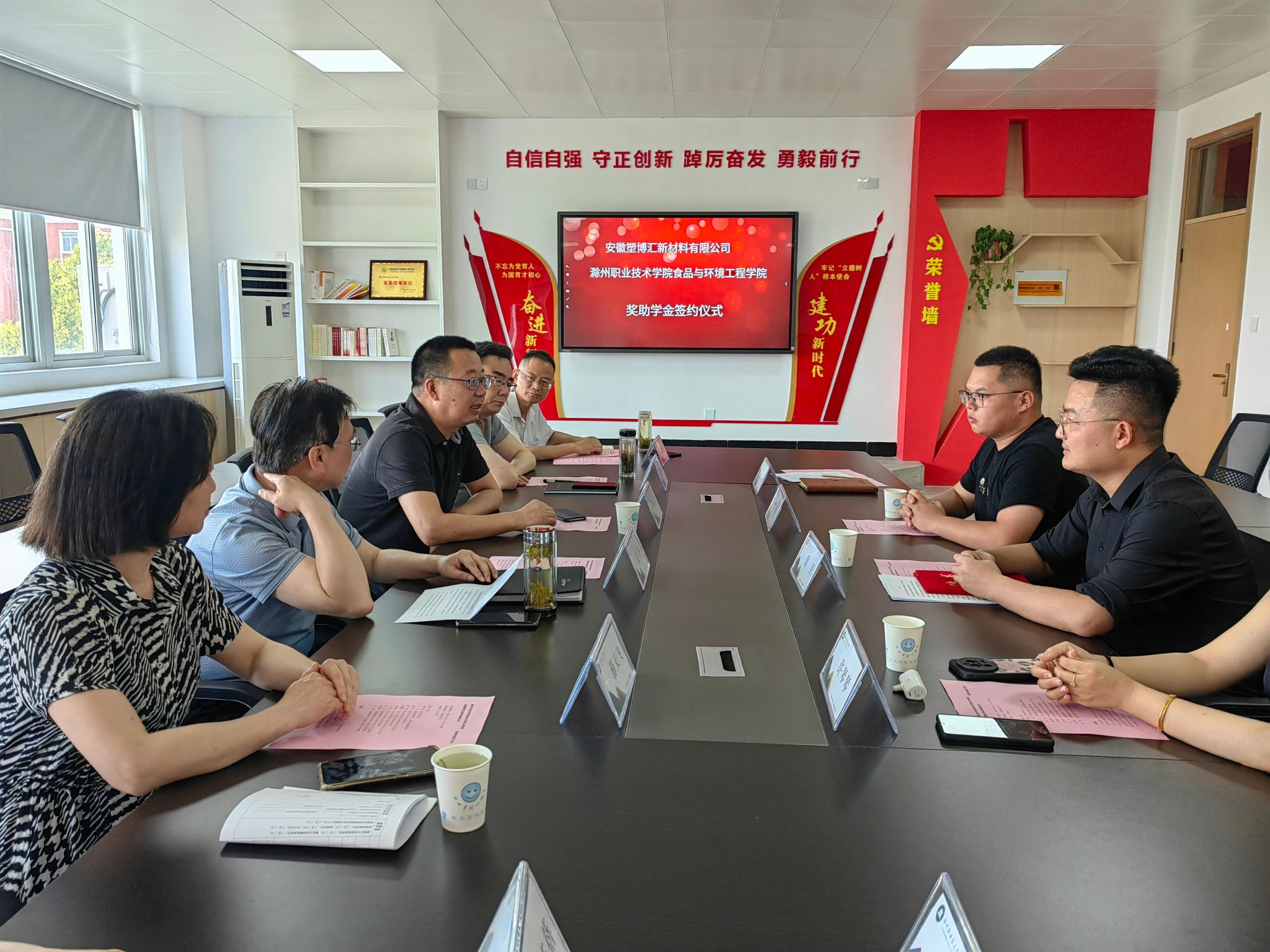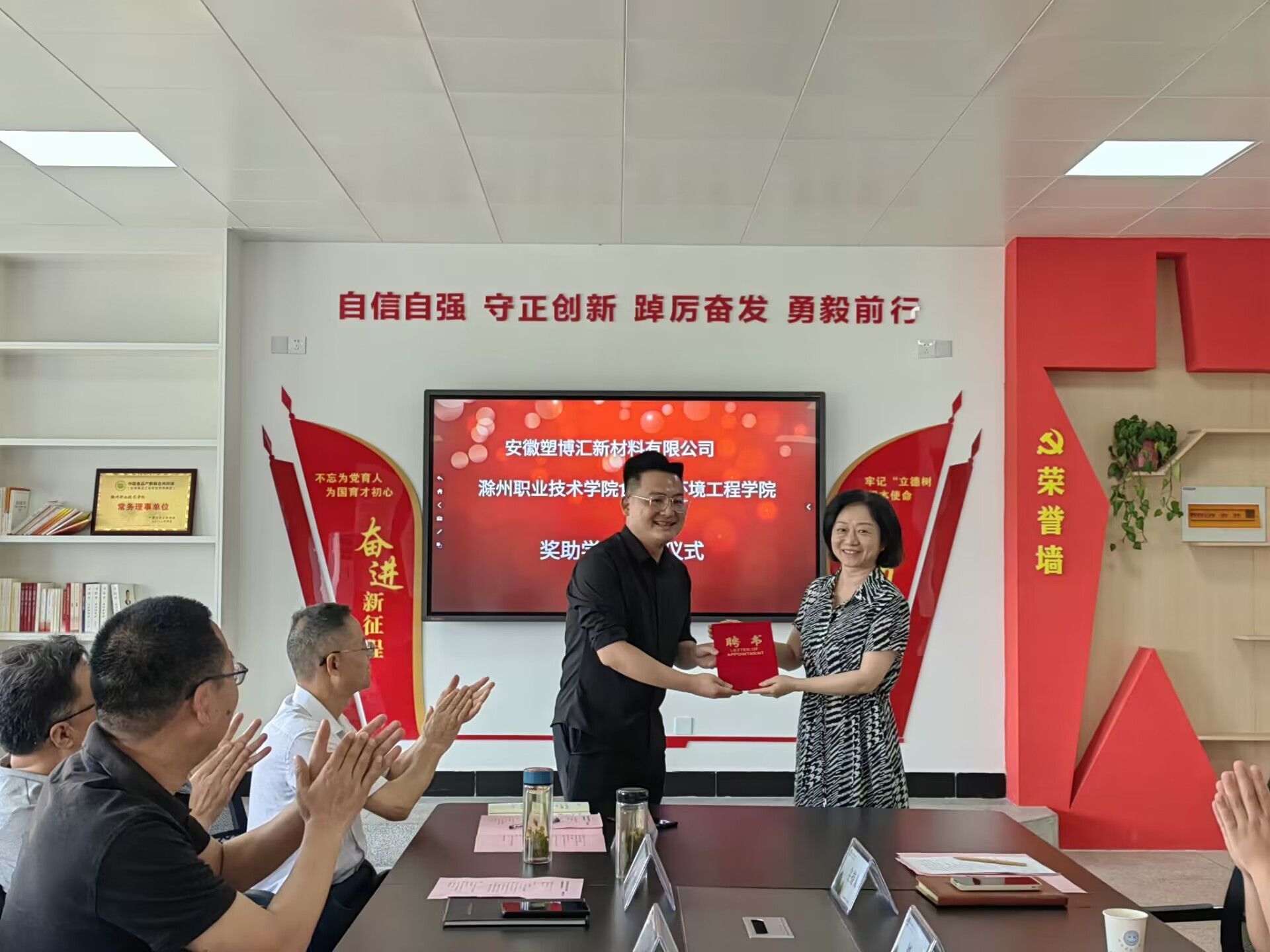 此次校友奖助学金由食环学院2012届毕业生吴卫捐资设立。吴卫是食环学院(原基础部)2012届高分子材料专业毕业生,2020年投资五百万元创办了安徽塑博汇新材料有限公司,在行业内发展势头迅猛。为表达对母校培养的感激之情,鼓励在校生学好本专业、成为行业优秀人才,吴卫主动联系学院拟设立奖助学金。