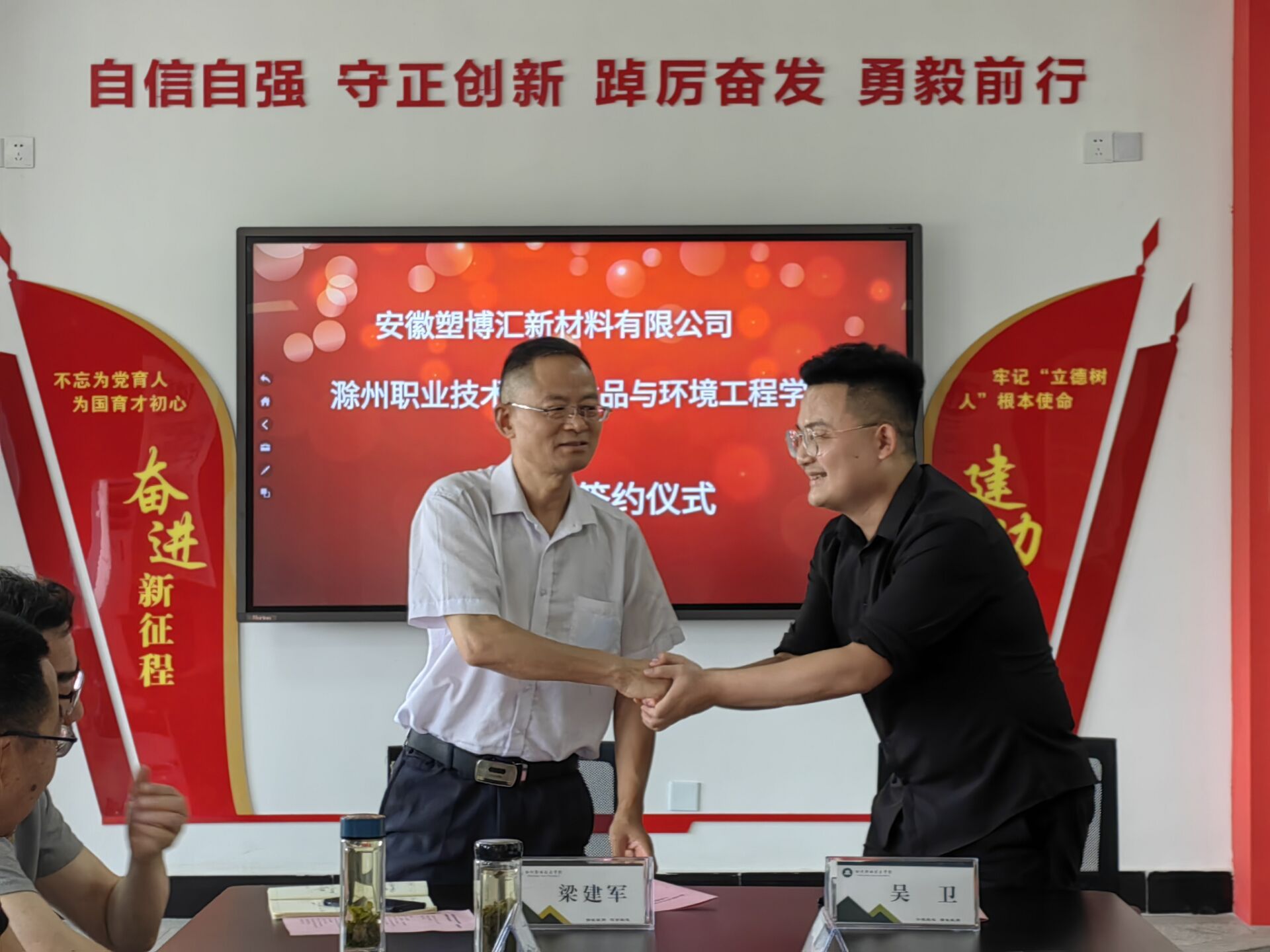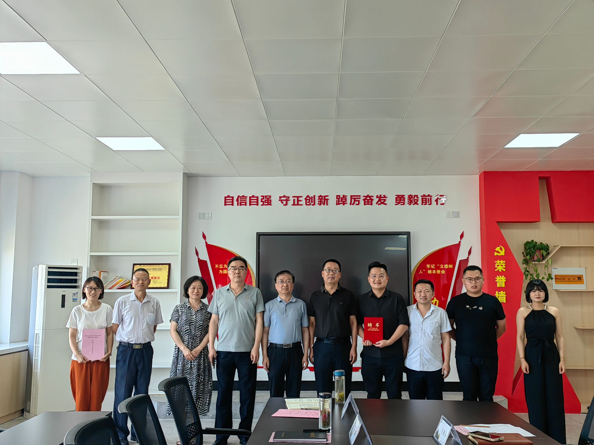梁建军代表食环学院,吴卫代表企业,签署了奖助学金捐赠合同。校学生工作处副处长薛天飞向吴卫颁发了“校外辅导员”聘书,与会领导、老师共同见证了这一时刻。