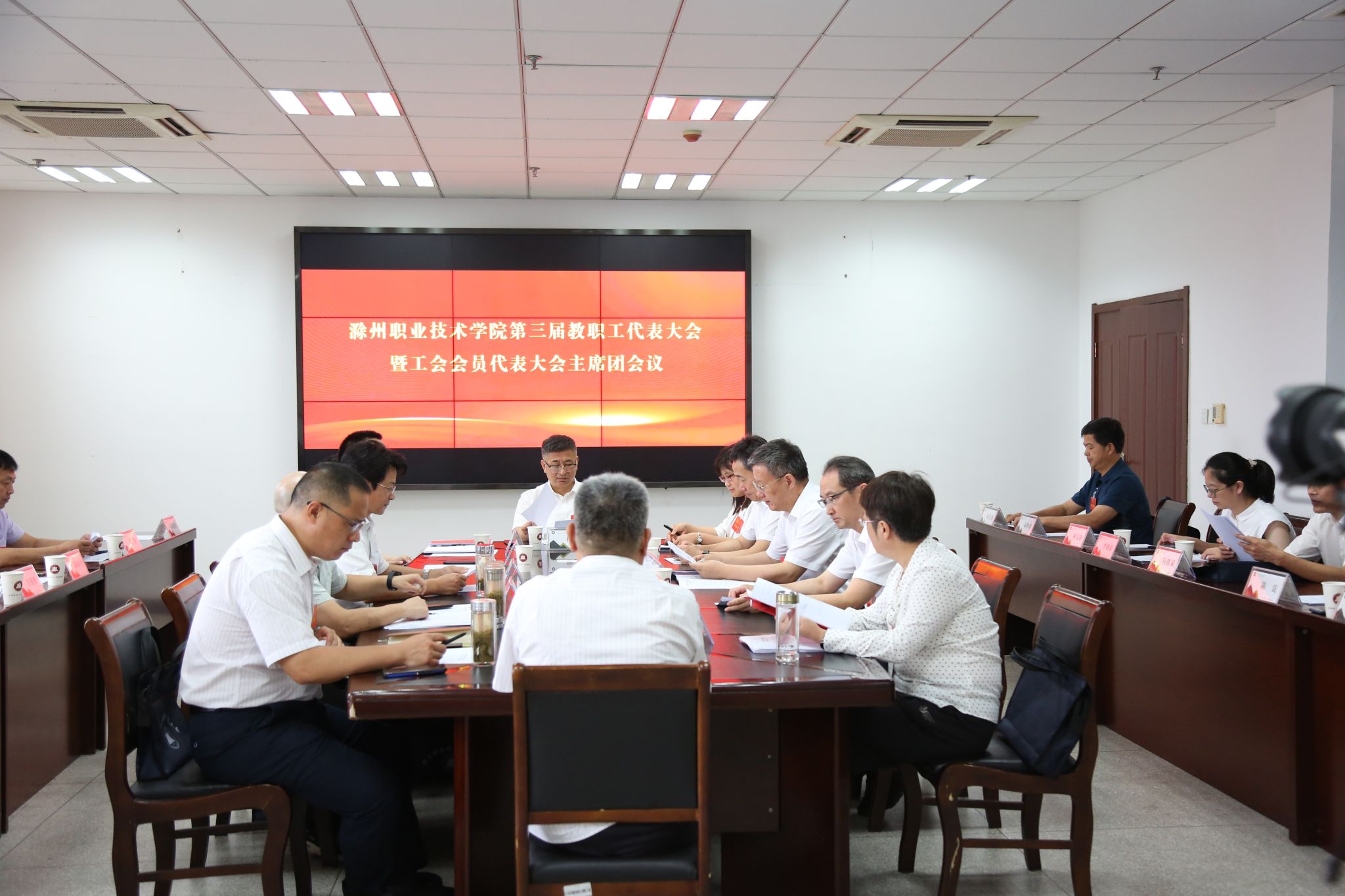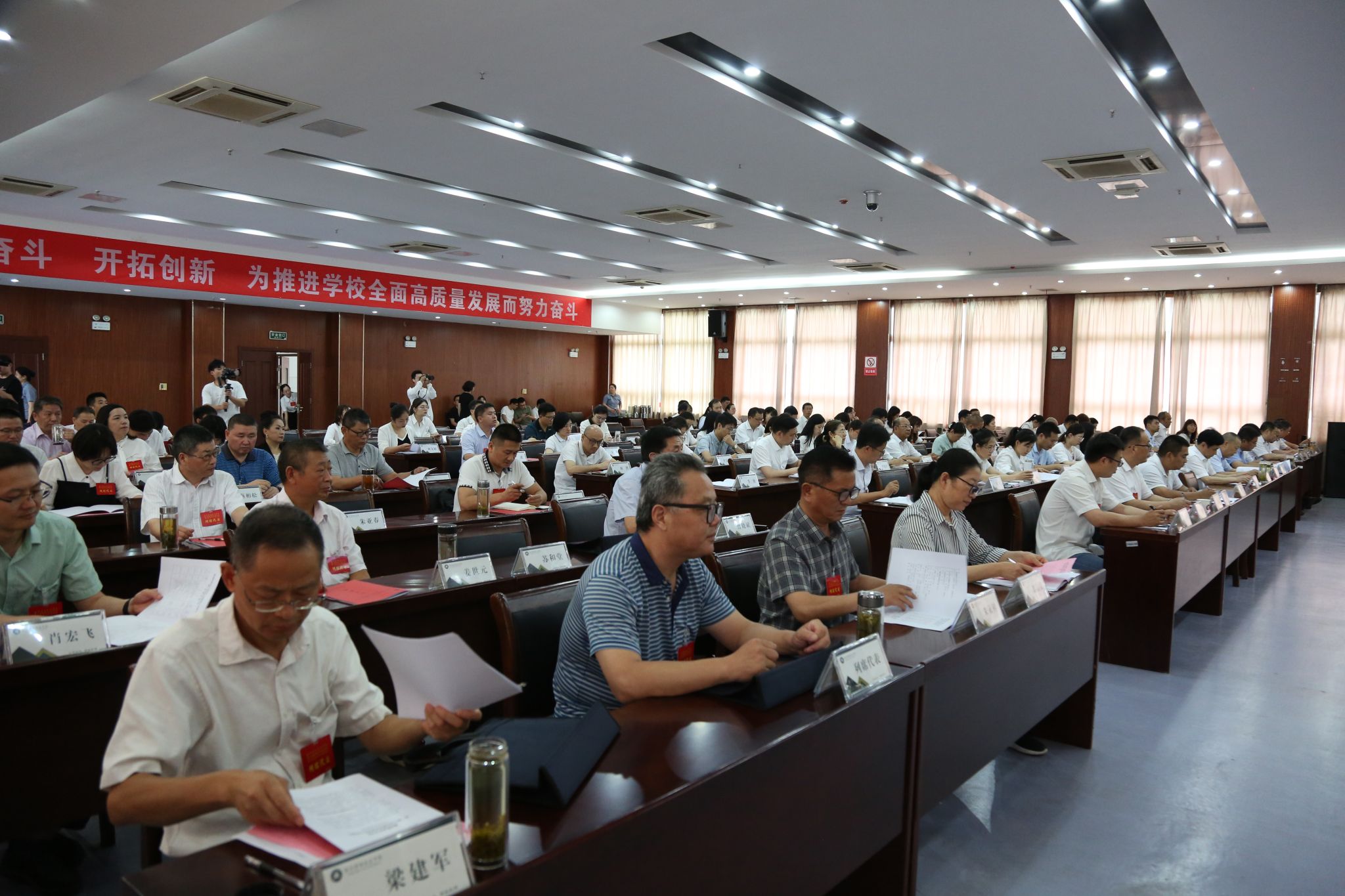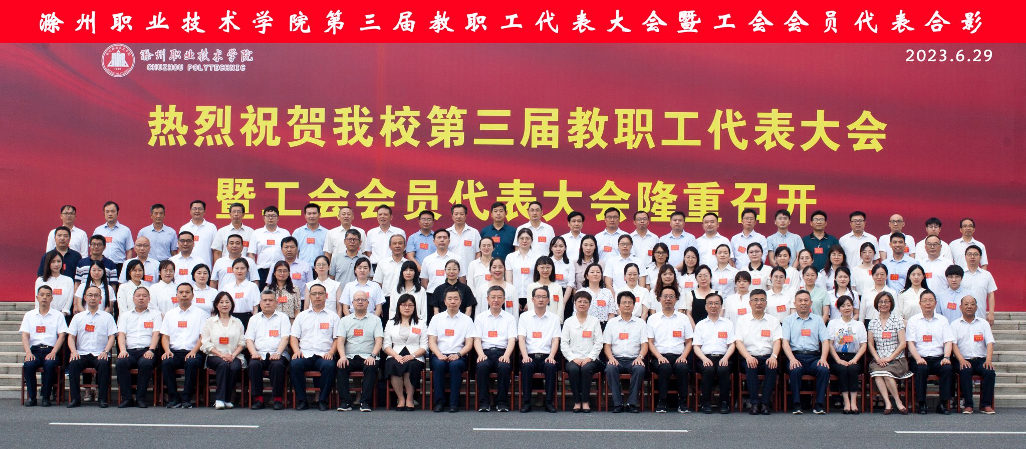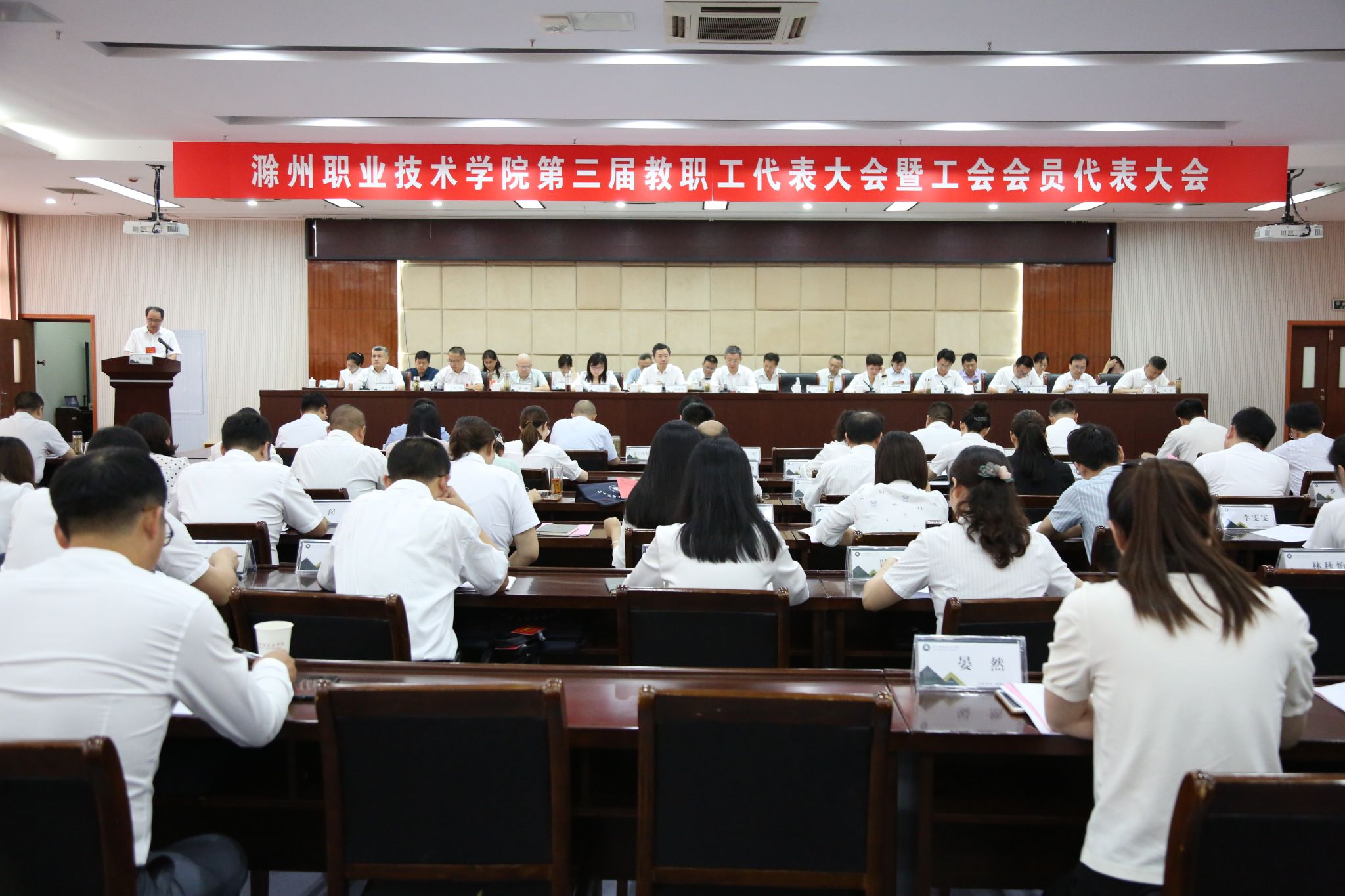 6月29日,beat365在综合楼5楼报告厅召开第三届教职工代表大会暨工会会员代表大会。校党委书记曹付忠,校党委副书记、校长许雪峰,校党委副书记杨家庆,校领导江洁、孙静、苏有良、胡凼、李平权、李超、王冬、陈学军、穆松出席会议。各正式代表、列席代表、特邀代表参加了会议。大会由杨家庆主持。
