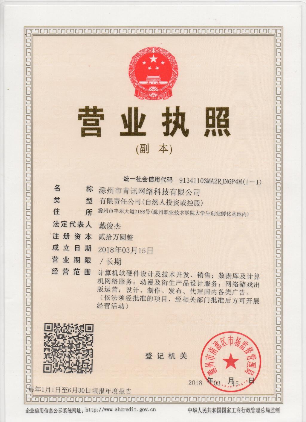 2018年3月,又创办了《滁州青讯网张科技有限公司》,注册资本200万元,主要开发青鸟快聘、青鸟兼职、青鸟课堂等APP,最终形成以兼职服务为引流,平台共享为主,综合服务为核心的多元化连锁平台。