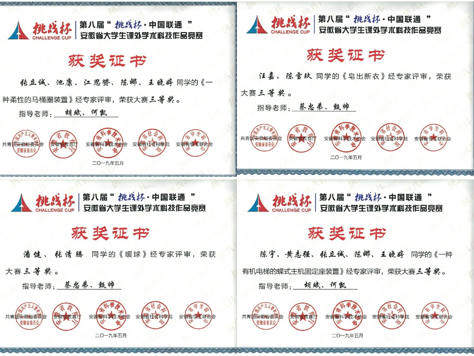 为了推动大学生创新创业素质教育,全面提高学生综合素质,充分展示学生风采,营造良好的校园文化氛围,5月27日,安徽省第八届“挑战杯·中国联通”大学生课外学术科技作品竞赛在合肥工业大学圆满落幕。beat3658件作品成功获得高职组创意设计竞赛奖项。