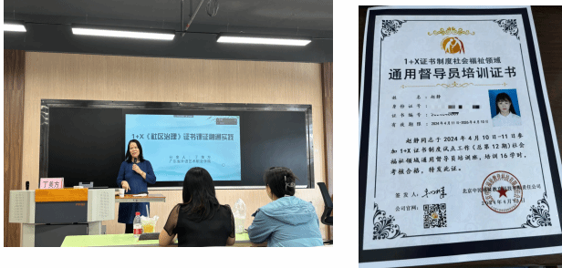 为了深化产教融合、助力人才培养,全面深入推进1+X证书制度试点工作,4月8日-11日,由北京中民福祉教育科技有限公司主办、广东省外语艺术学院承办的“2023年社会福祉领域1+X证工作表彰会暨通用督导员、技术员培训班”在广州举行。我院教师赵静参加了此次培训并通过考核。