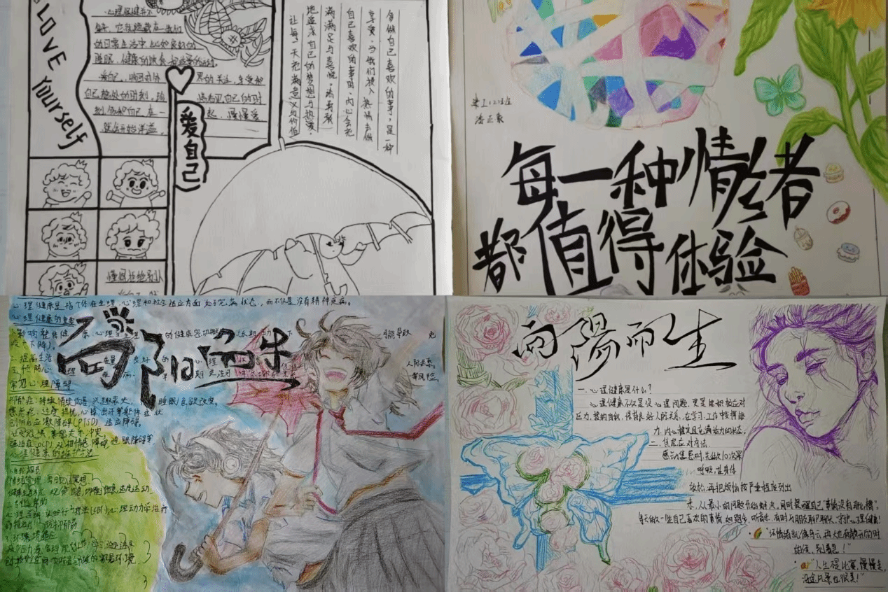 本次手抄报征集活动中,同学们积极参与创作活动,用独特的视角诠释对心理健康的理解,用灵动的创意展现丰富的创造力与深刻的思考。每一幅作品都承载着温暖、力量与希望,展现出青春的蓬勃朝气;每一幅作品都是同学们心灵的映射,是大家对心理健康的深刻理解与独特表达。