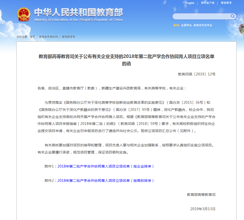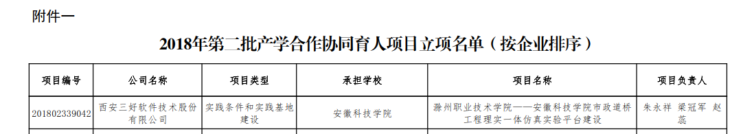 作为教育部优质专科院校建设单位和安徽省“地方技能型高水平大学”建设单位,近年来,beat365积极构建教育和产业统筹融合发展格局、强化企业重要参与主体作用以及推进产教融合人才培养模式改革。本次由beat365朱永祥教授主持的教育部产学合作协同育人项目获批,将推动beat365与企业的产教融合力度,后期学院将加强与企业的沟通交流,共同商定项目开展方案,保证协同育人项目的顺利实施。
