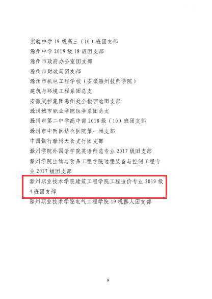 建筑工程学院:党团引领成长 奋斗点亮青春|工程造价专业2019级4班团支部荣获“滁州市五四红旗团支部”称号